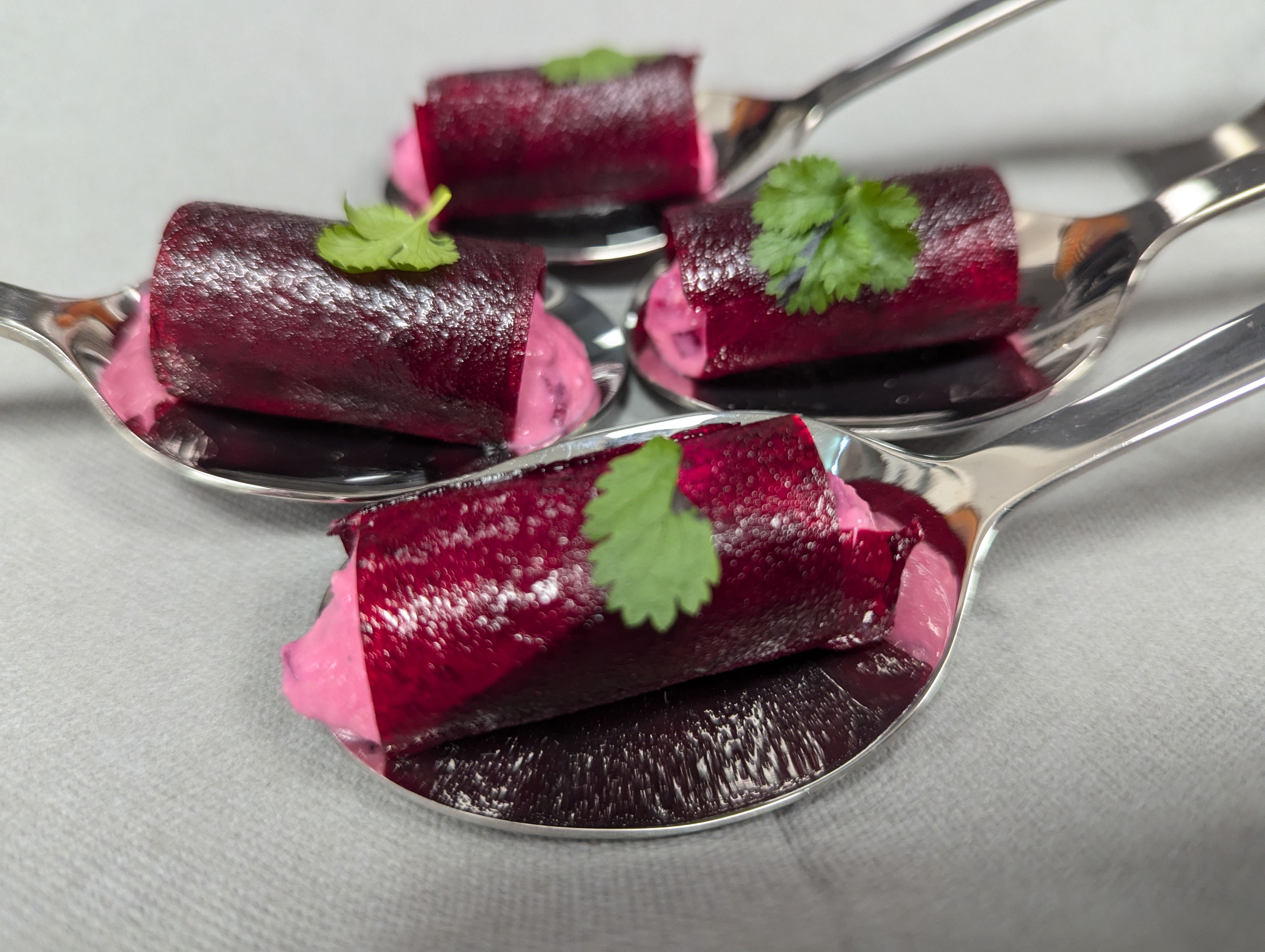 • Kalbsfilet in der kartoffel-Lauchzwiebel-Kruste auf Misoschaum