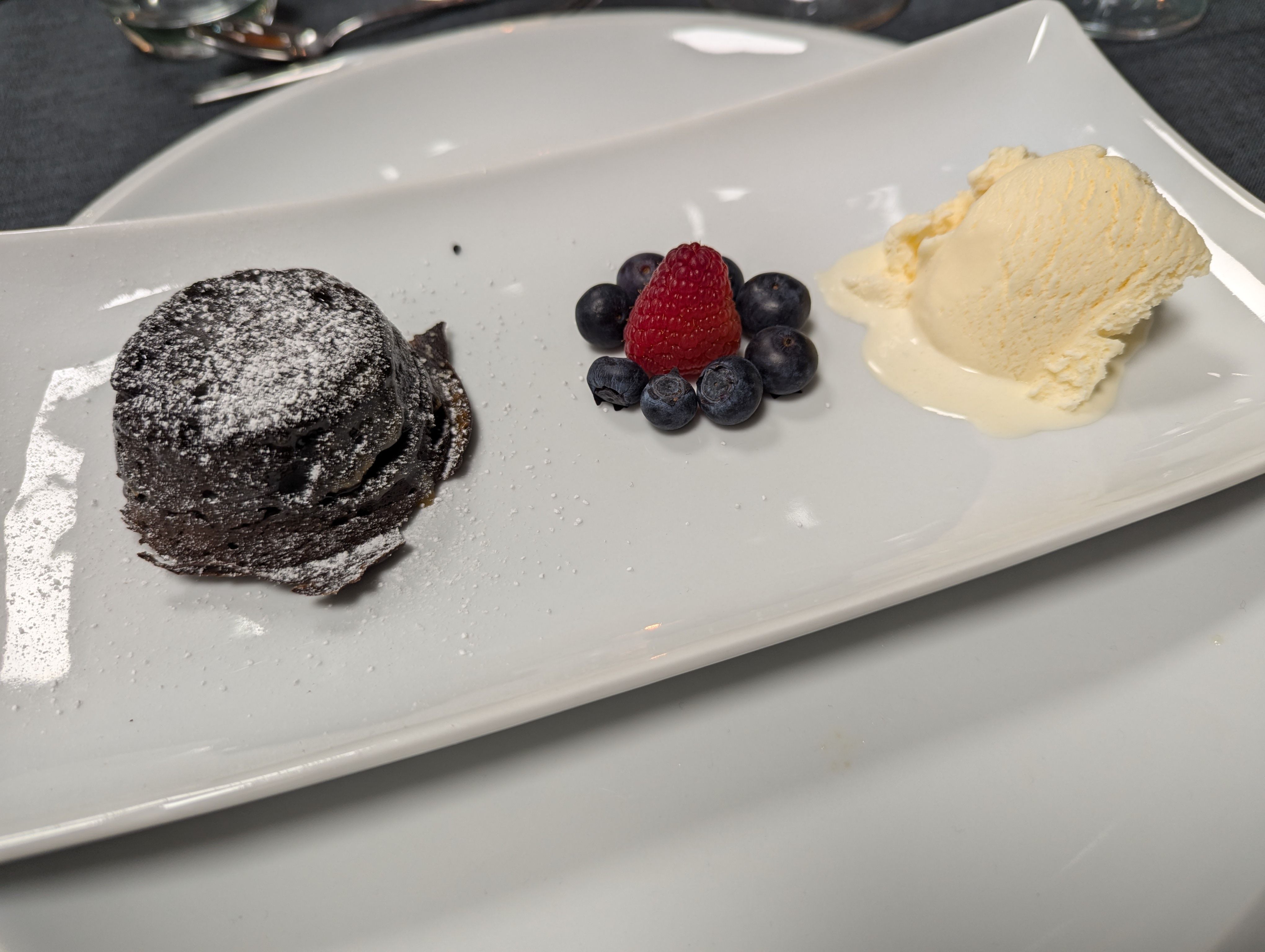 • Lava-Cake mit flüssigem Salzkaramell-Kern und Vanilleeis