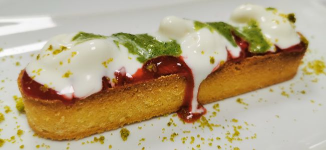 • Frozen Joghurt mit Erdbeerkompott und süßem Pesto