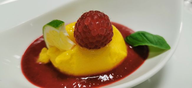 • Tomaten-Ravioli mit Parmesanschaum und Basilikum-Zabaione