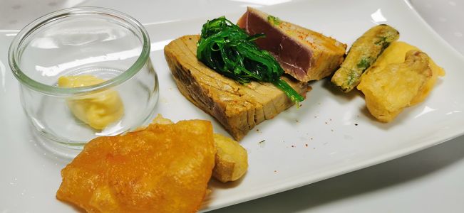 • Thunfisch-Tataki in Togarashi mit Gemüse-Tempura