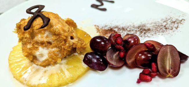 • Gebratenes Eis mit Früchten