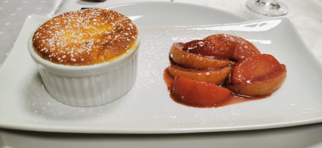 • Quark-Zimt-Soufflé mit Winterfrüchte-Ragout