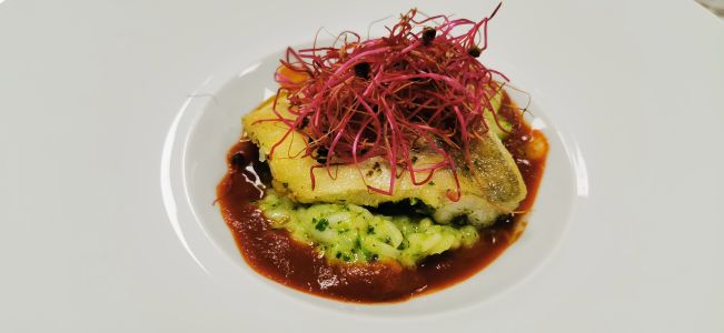 • Steinbuttfilet mit Pastinaken-Spitzkohl-Stampf und Estragonschaum