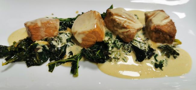 • Grünkohl asiatische Art mit Lachs