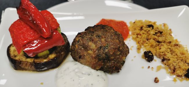 • Lammköfte mit Grillgemüse und Bulgur