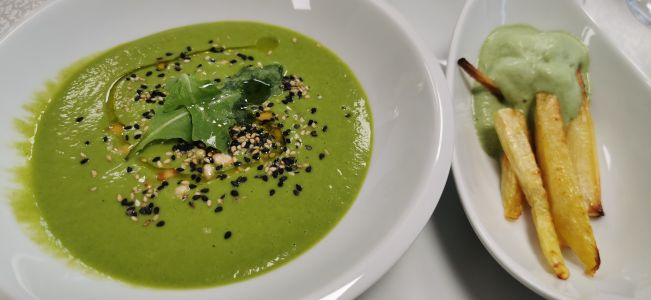 • Minziges Spinatsüppchen zu Gemüsepommes