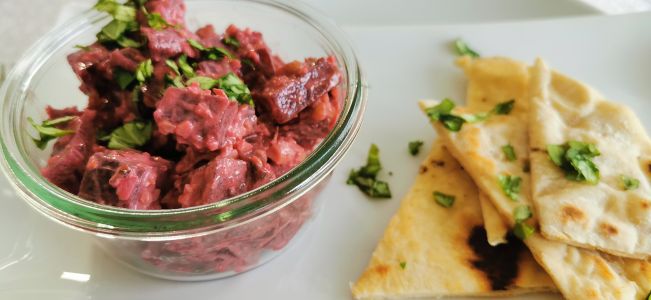 • Rinderfilet mit Pistazienkruste an Rübenpüree