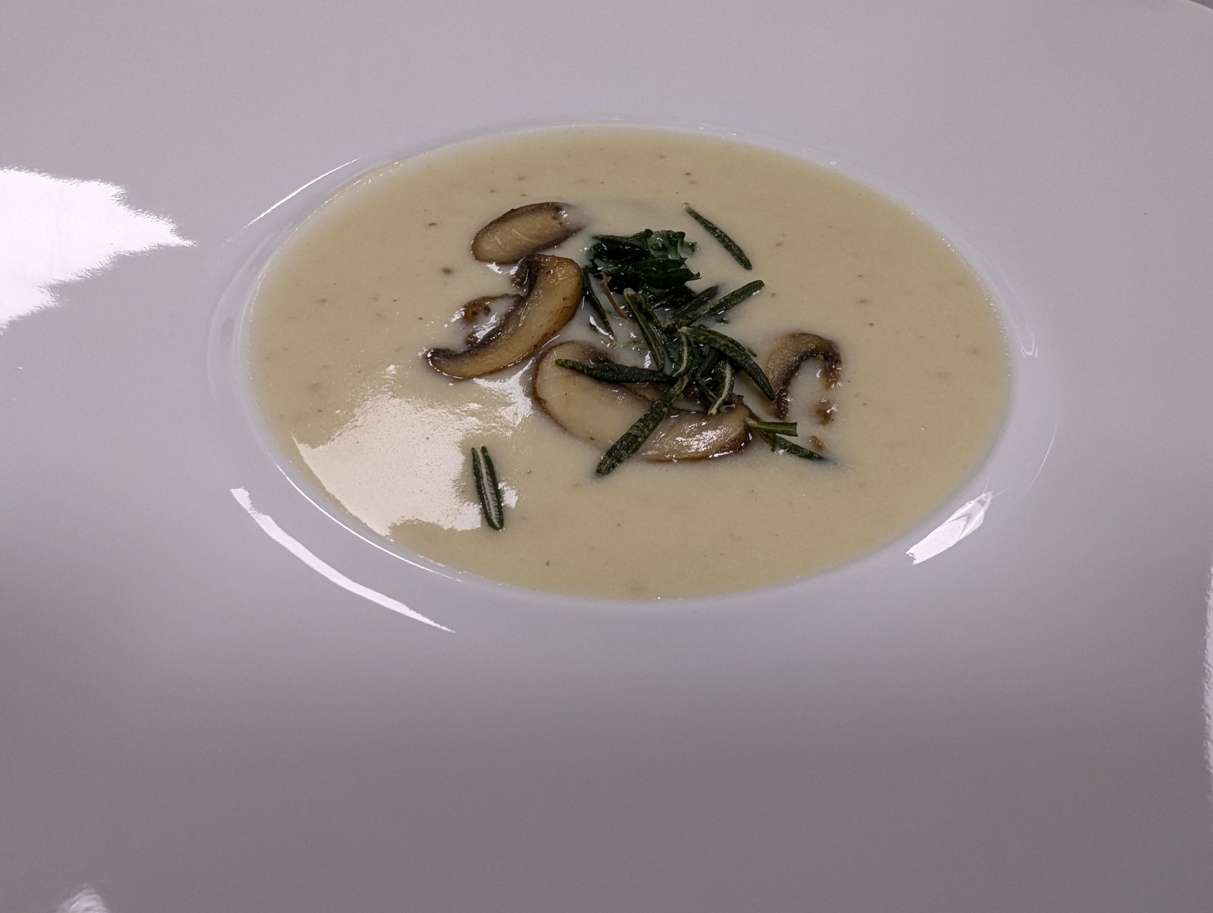 • Kartoffel-Steinpilz-Suppe mit frittierten Kräutern