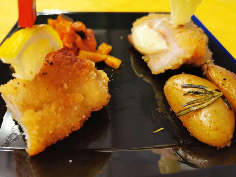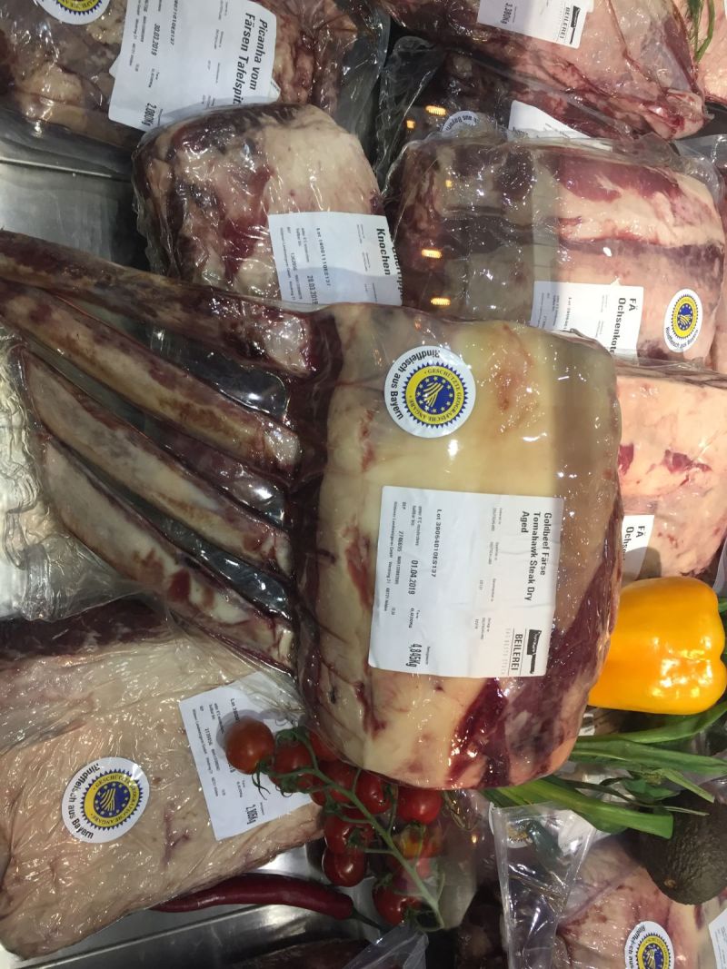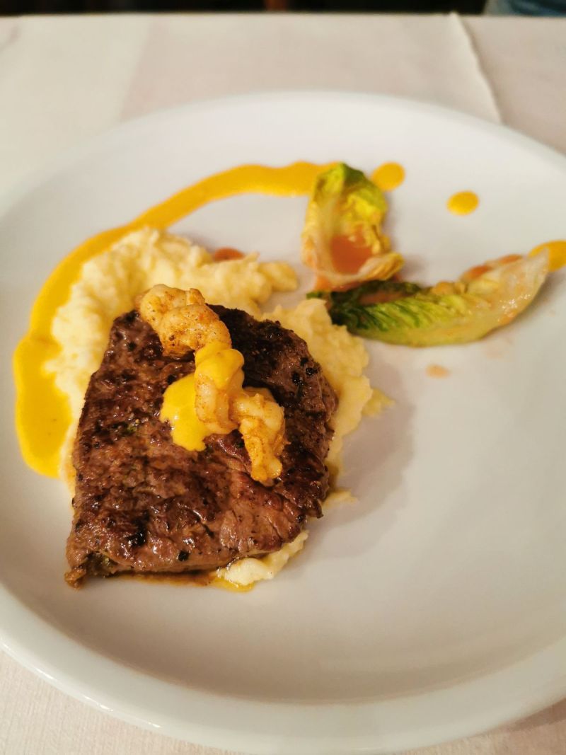Unser Beitrag zum Fest, bestand aus dem Hauptgang „Surf & Turf“. Hierzu gatten wir ca. 9 kg Rinderfilet portioniert, gebunden, Sous vide gegart und Anschließend als Teppanyaki gegrillt. Dazu gab es Garnelen, Kartoffel-Sellerie-Püree, Salatbeilage mit Himbeervinaigrette sowie eine Krustentiersauce mit Parmesan. Für diesen Gang erhielten wir mehrfach Lob, welches neben der perfekten Zubereitung meist die sehr gute Kombination der Aromen und der exzellenten Sauce beinhaltete. Auch wenn wir als Chuchi-Melle-Grönegau noch Verbesserungspotential bei der Optik sahen freute uns die positive Resonanz sehr.