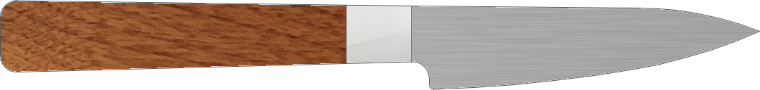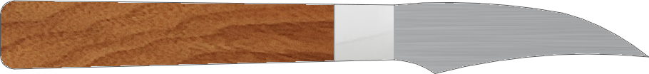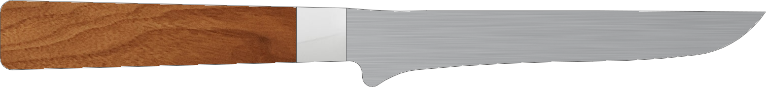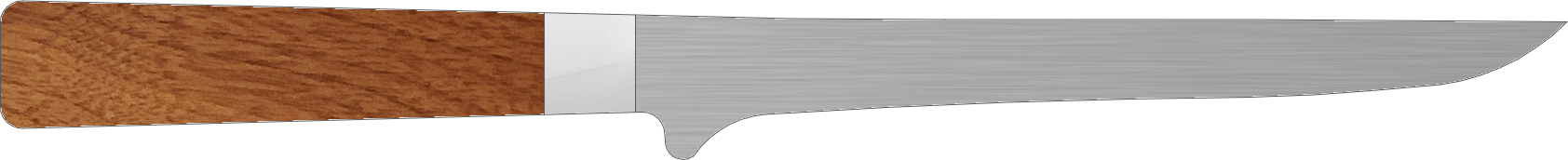 Schmale, sehr spitz zulaufende Klinge mit einer gewölbten Klingenunterseite. Zum Ablösen von Knochen und Enthäuten von Fleisch und Geflügel.