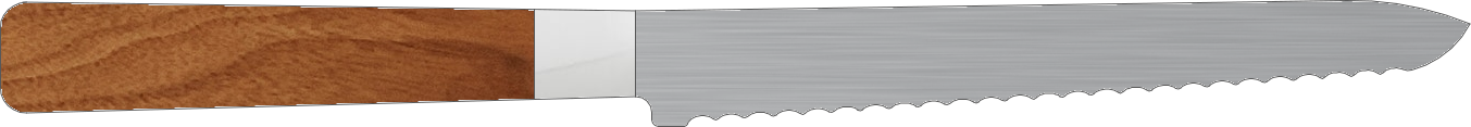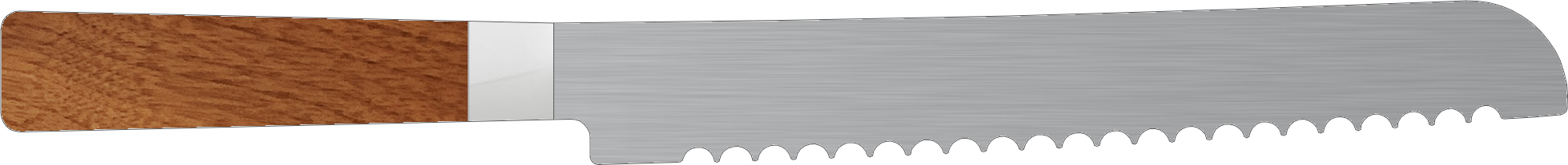 Lange Klinge mit grobem Wellenschliff, der das Ausflocken der Brotscheiben verhindert.