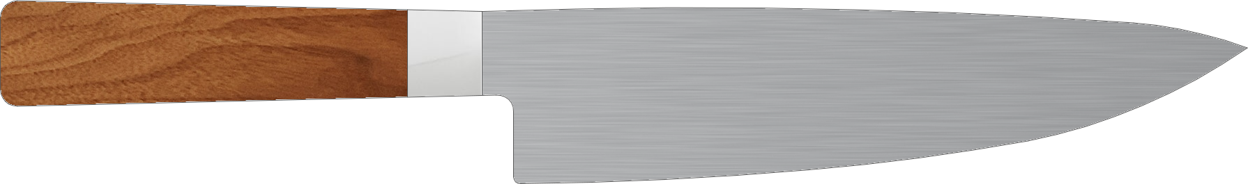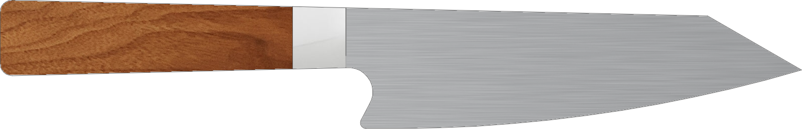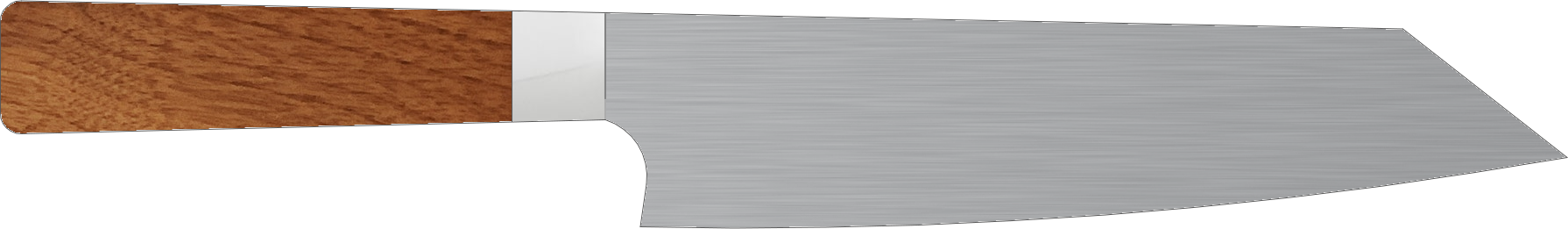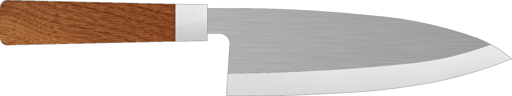 Ein japanisches Kochmesser mit einer Klingenspitze im umgekehrten Tanto-Profil und breiter Klinge, beidseitig geschliffen. Eine Art Hybrid aus Gyuto (Kochmesser) und Santoku. zu verwenden. Für Fleisch, Fisch und auch eher kleines Gemüse.
