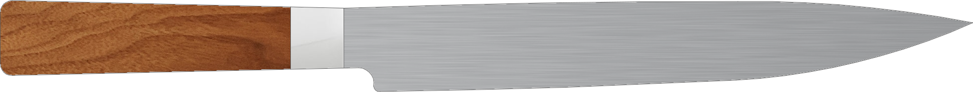 Lange, schmale und sehr biegsame Klinge mit abgerundeter Spitze. Zum Schneiden von Lachs.