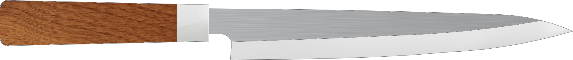 Ein japanisches Kochmesser mit breiter Klinge, beidseitig geschliffen. Es ist ein Sashimi- und Sushi-Messer, ist aber auch für Gemüse (Katsuramuki) sowie Fleisch geeignet.