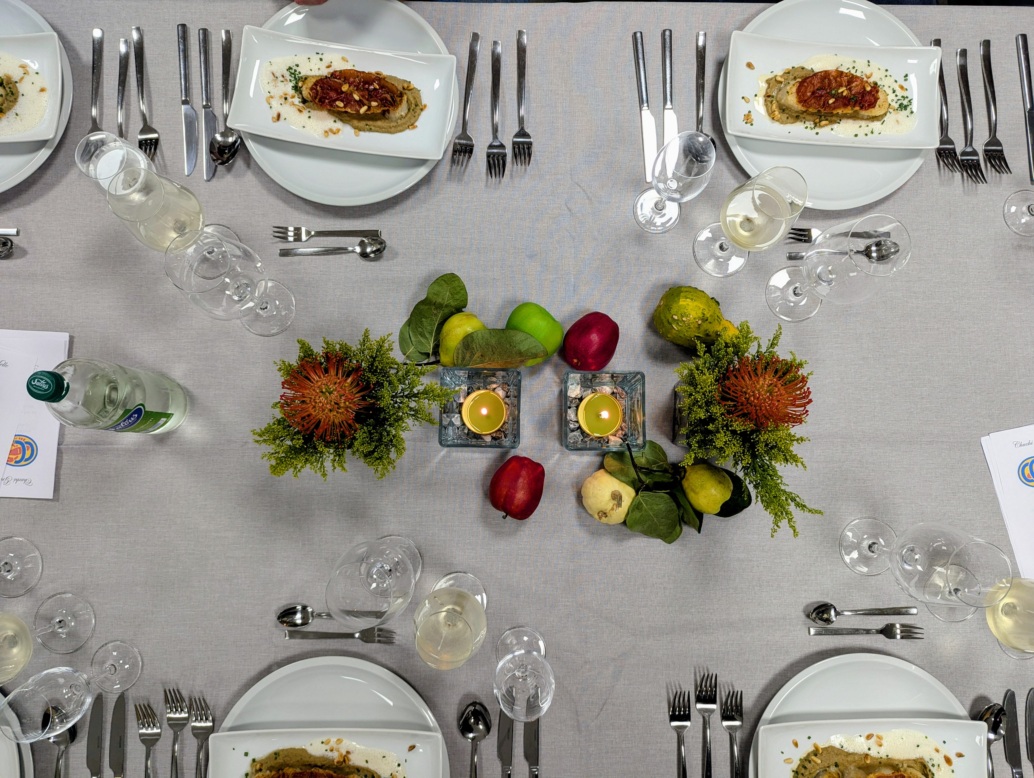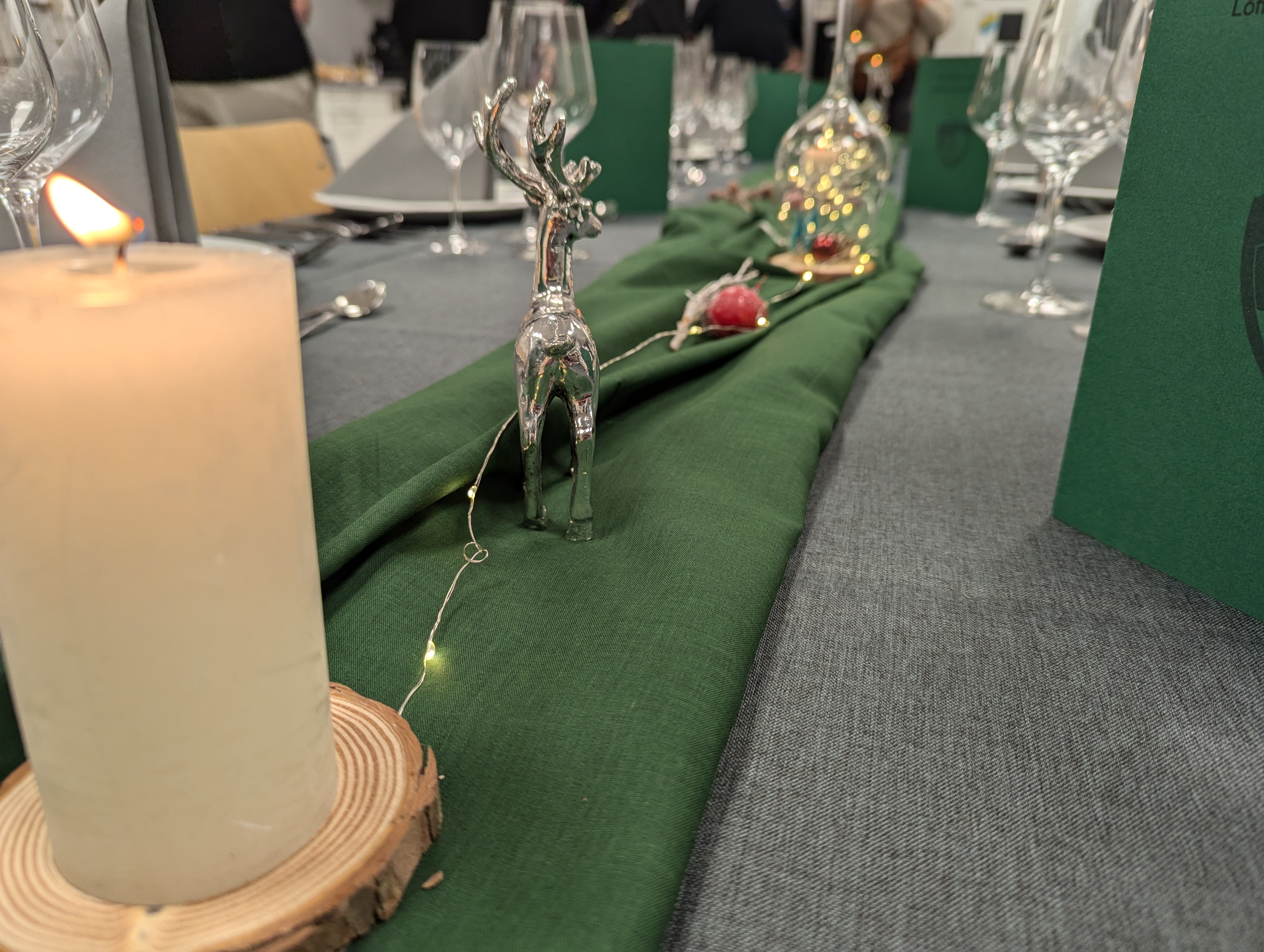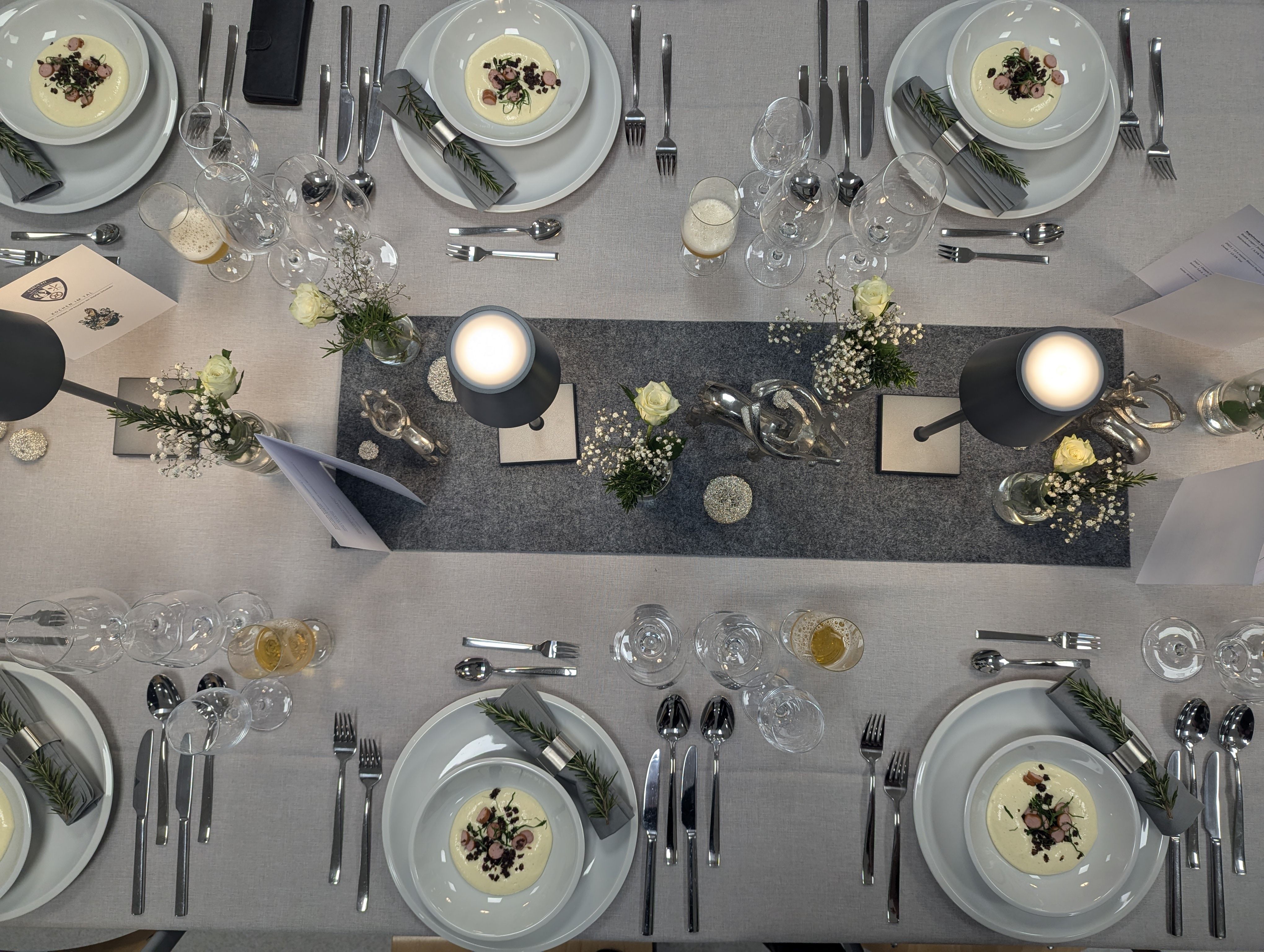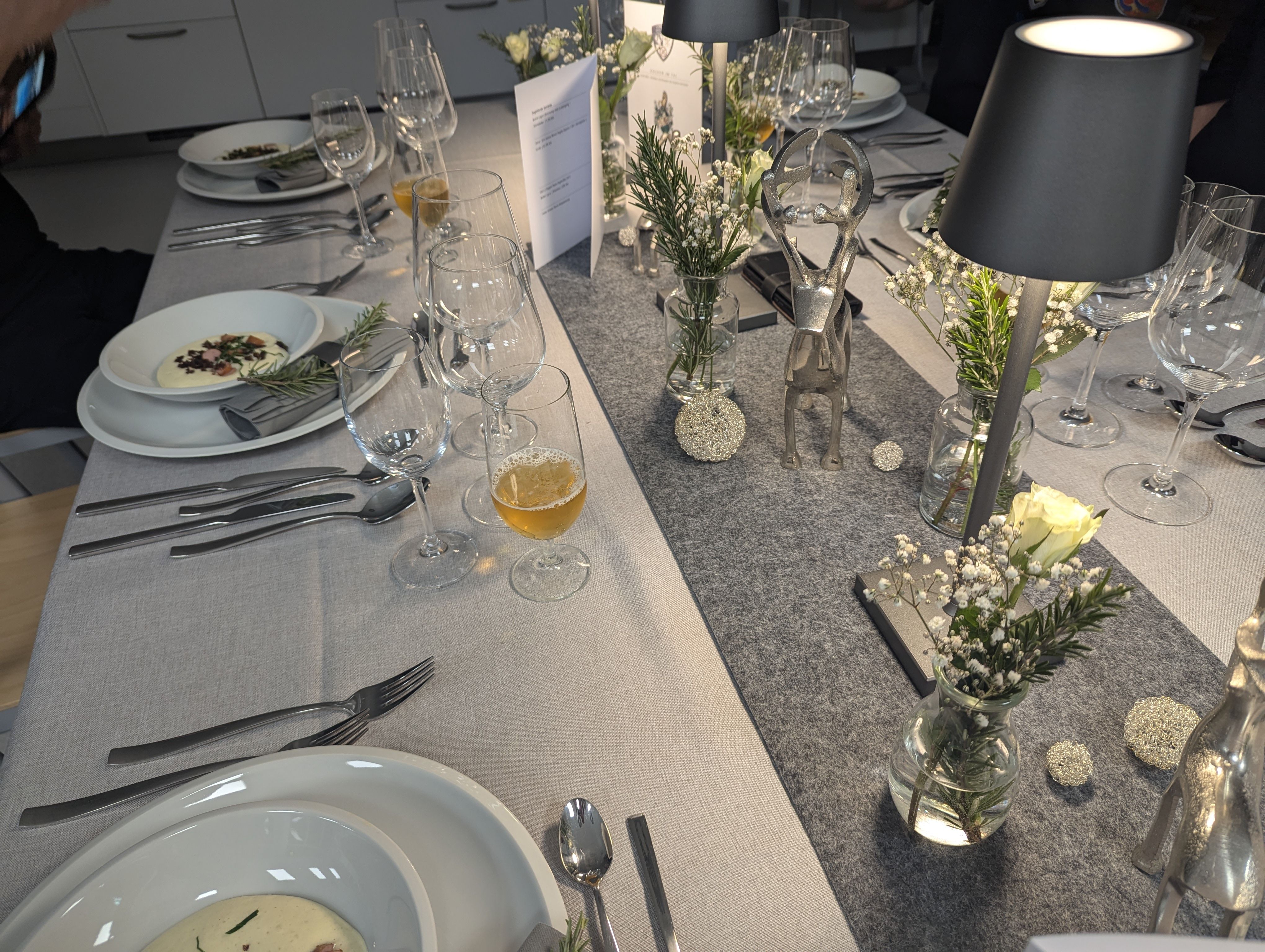 • Konfierter Saibling im Buttermilch-Sud mit gebratenem Gemüse, Selleriepüree und Estragon-Öl