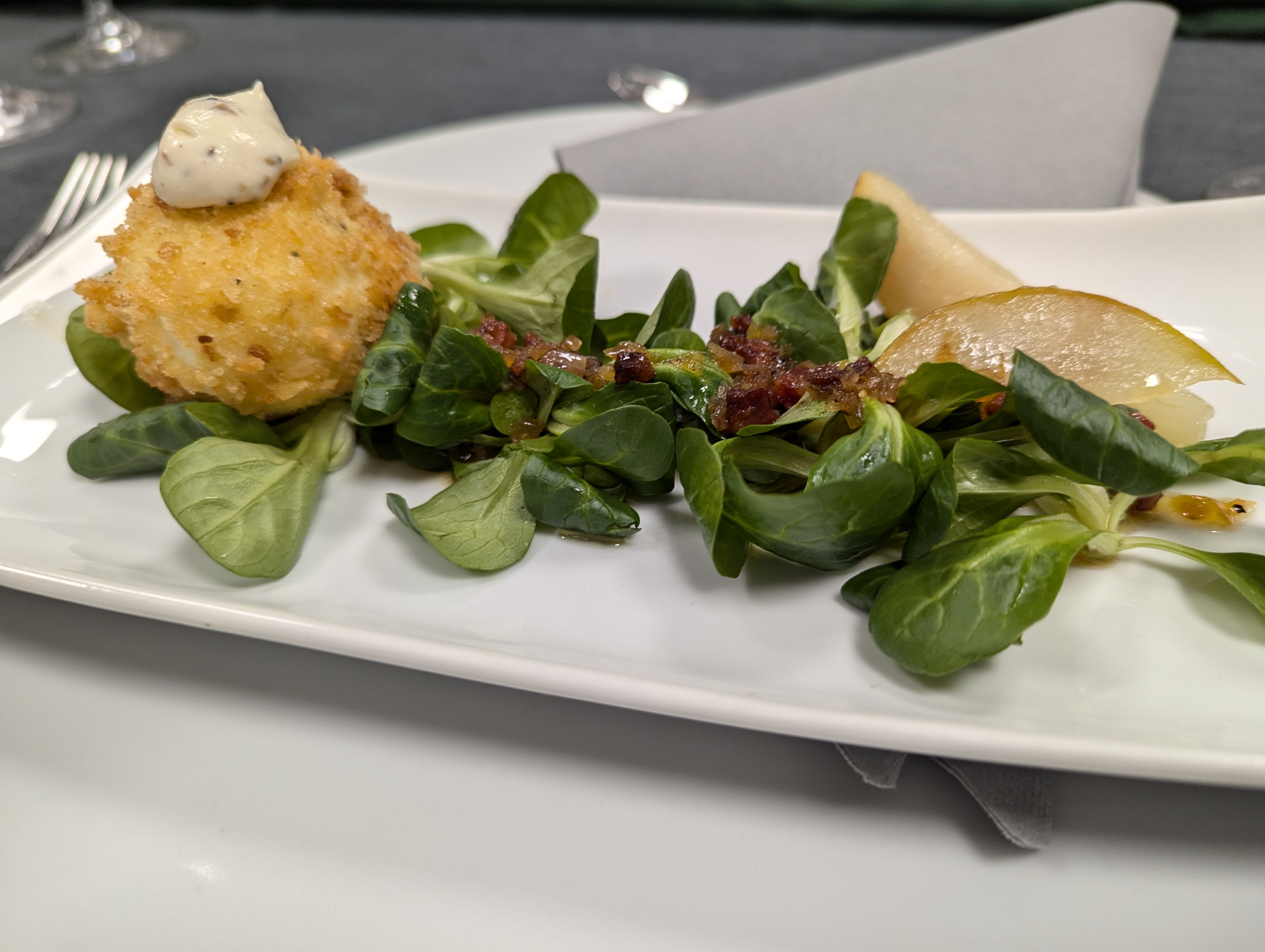 • Gebackenes Ei mit Trüffelcreme auf Feldsalat