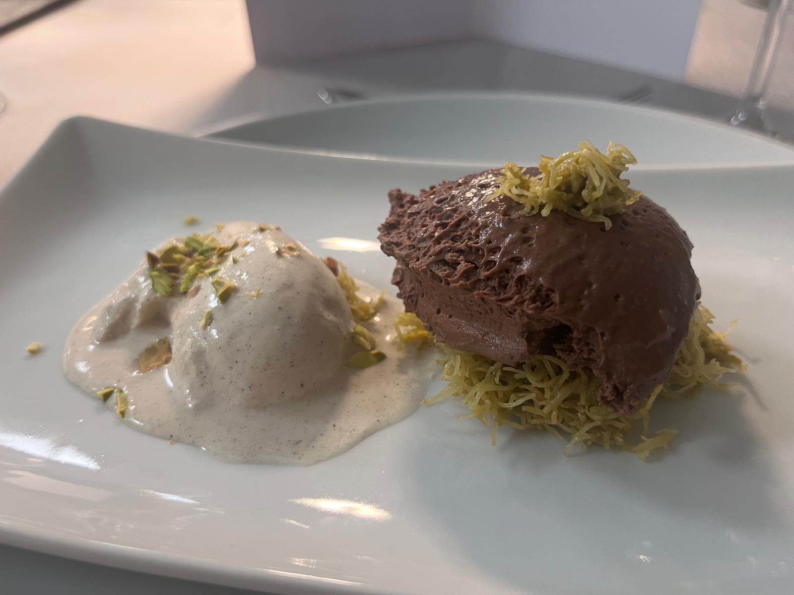 • Lava-Cake mit flüssigem Salzkaramell-Kern und Vanilleeis