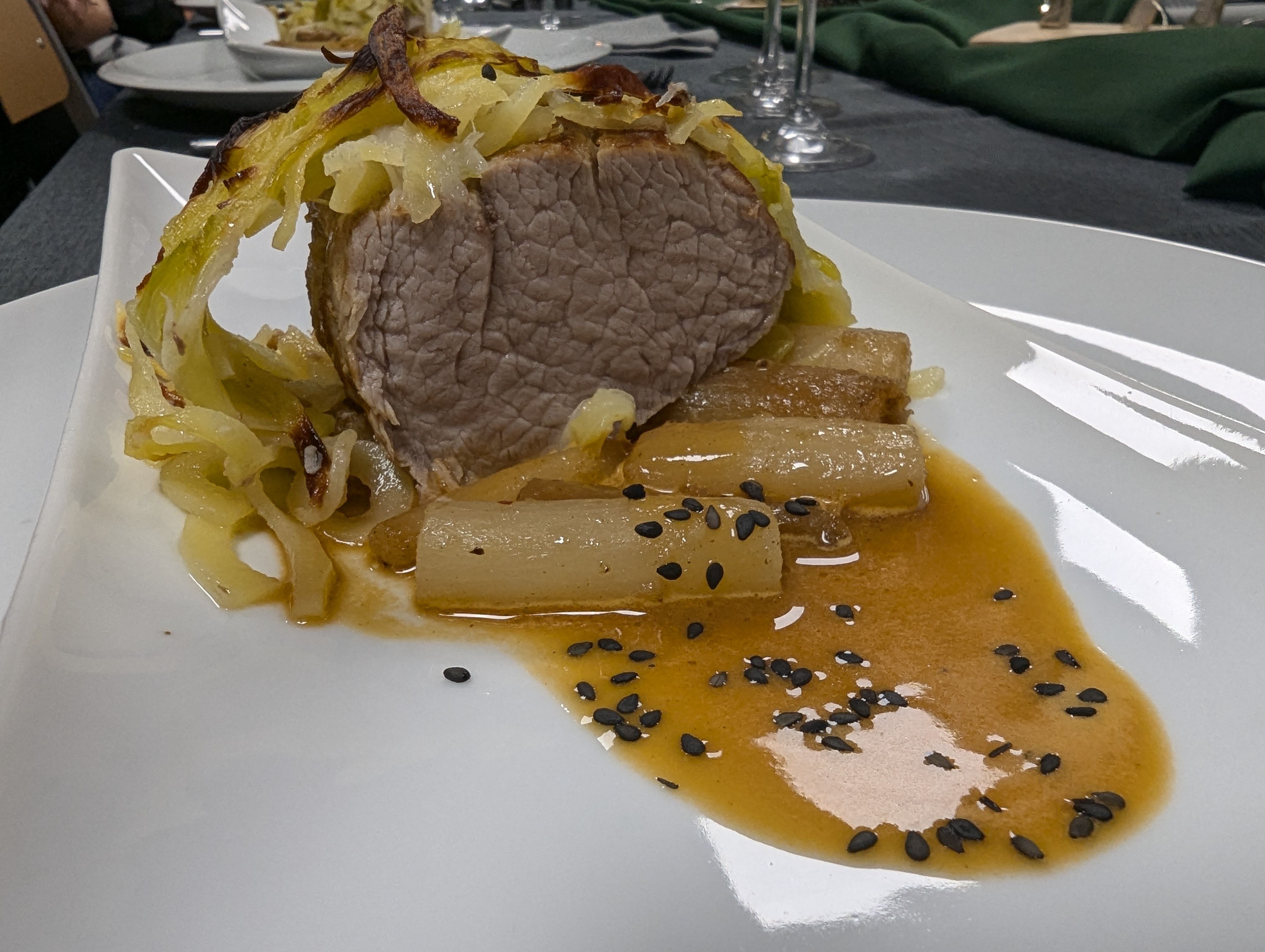 • Kalbsfilet in der kartoffel-Lauchzwiebel-Kruste auf Misoschaum