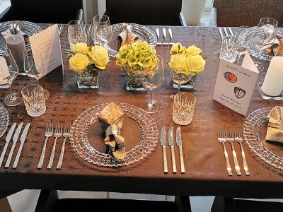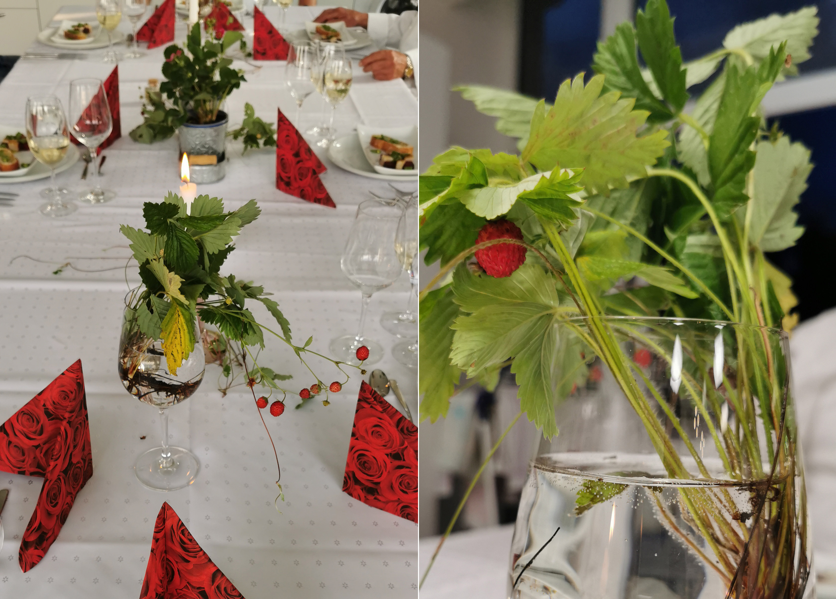 • Tranchen von der Entenbrust auf Erdbeercarpaccio und Kartoffelstroh