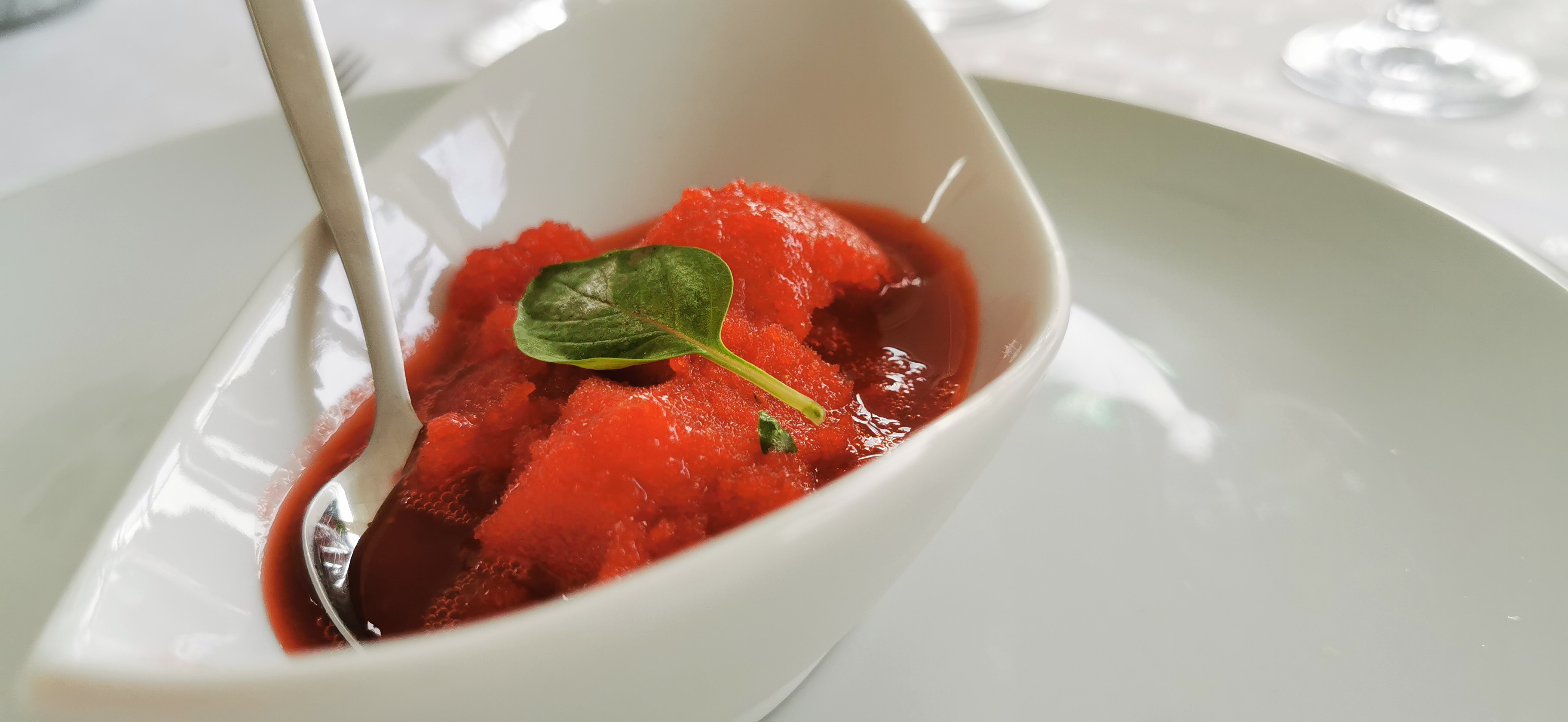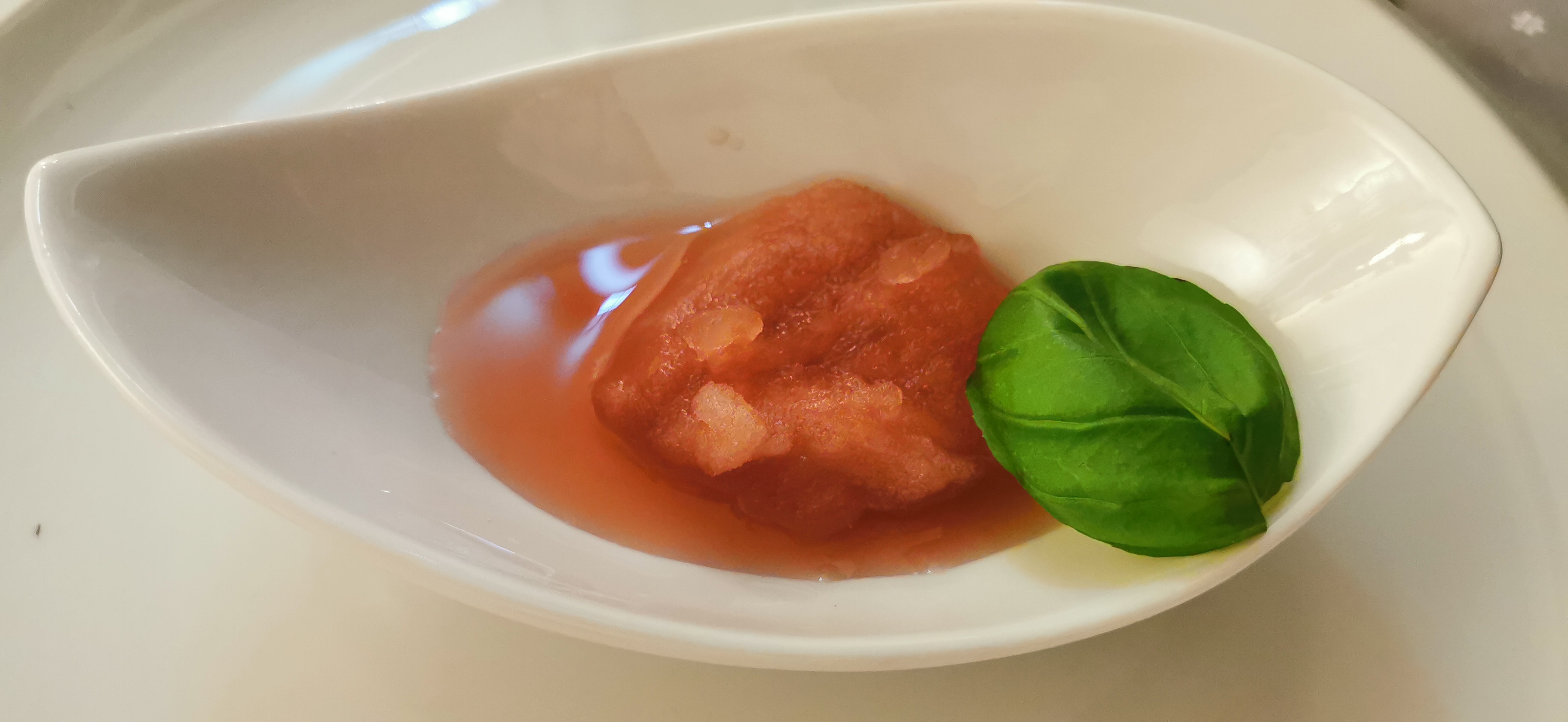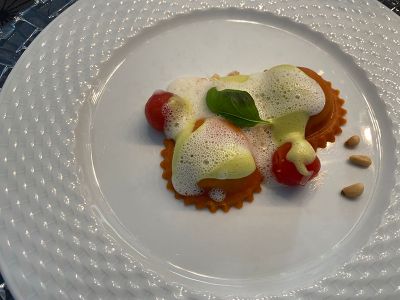 • Tomaten-Ravioli mit Parmesanschaum und Basilikum-Zabaione