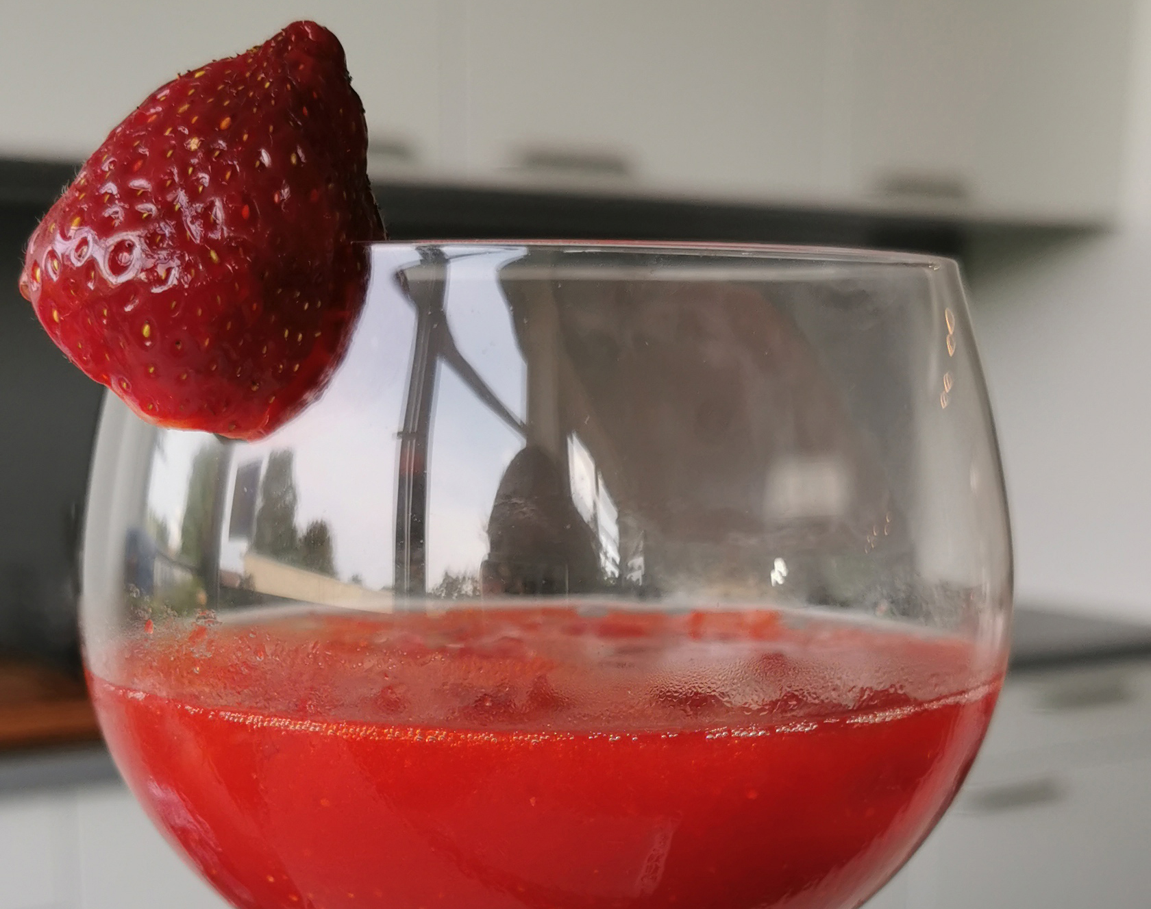 • Frozen Joghurt mit zu Erdbeerkompott und süßem Pesto