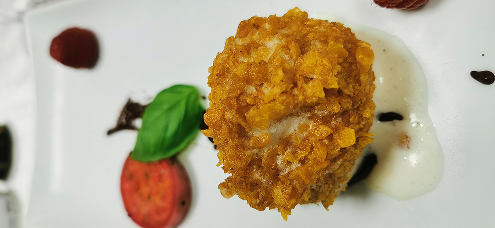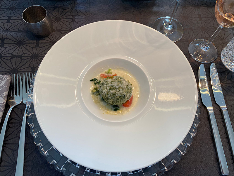 • Spinat-Ziegentopfen-Knödel mit Pecorinoschaum und Spinat