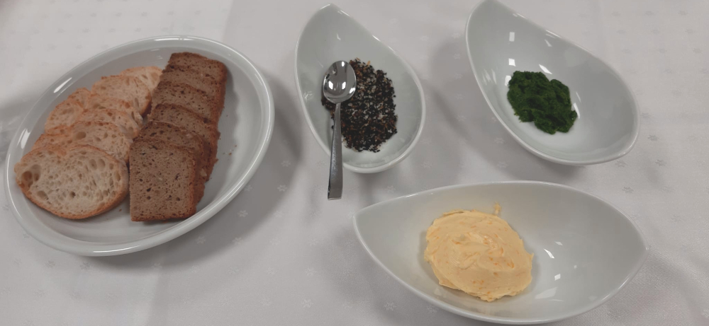 • Lachs mit Erdbeersalsa und Brot von der Süßkartoffel mit Ziegenfrischkäse und Erdbeeren