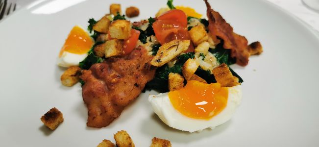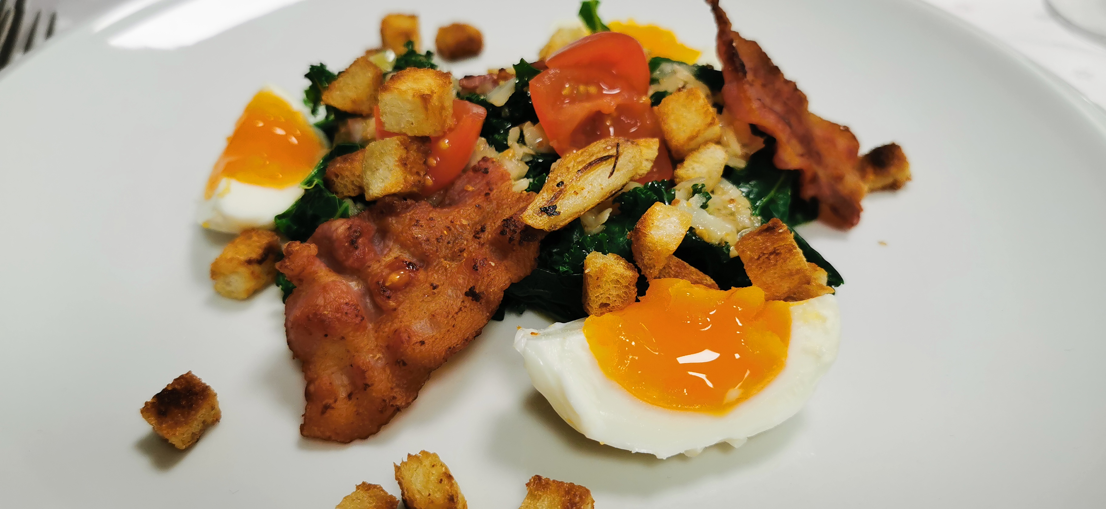 • Grünkohlsalat mit gebratenem Speck und dem besten vom Huhn