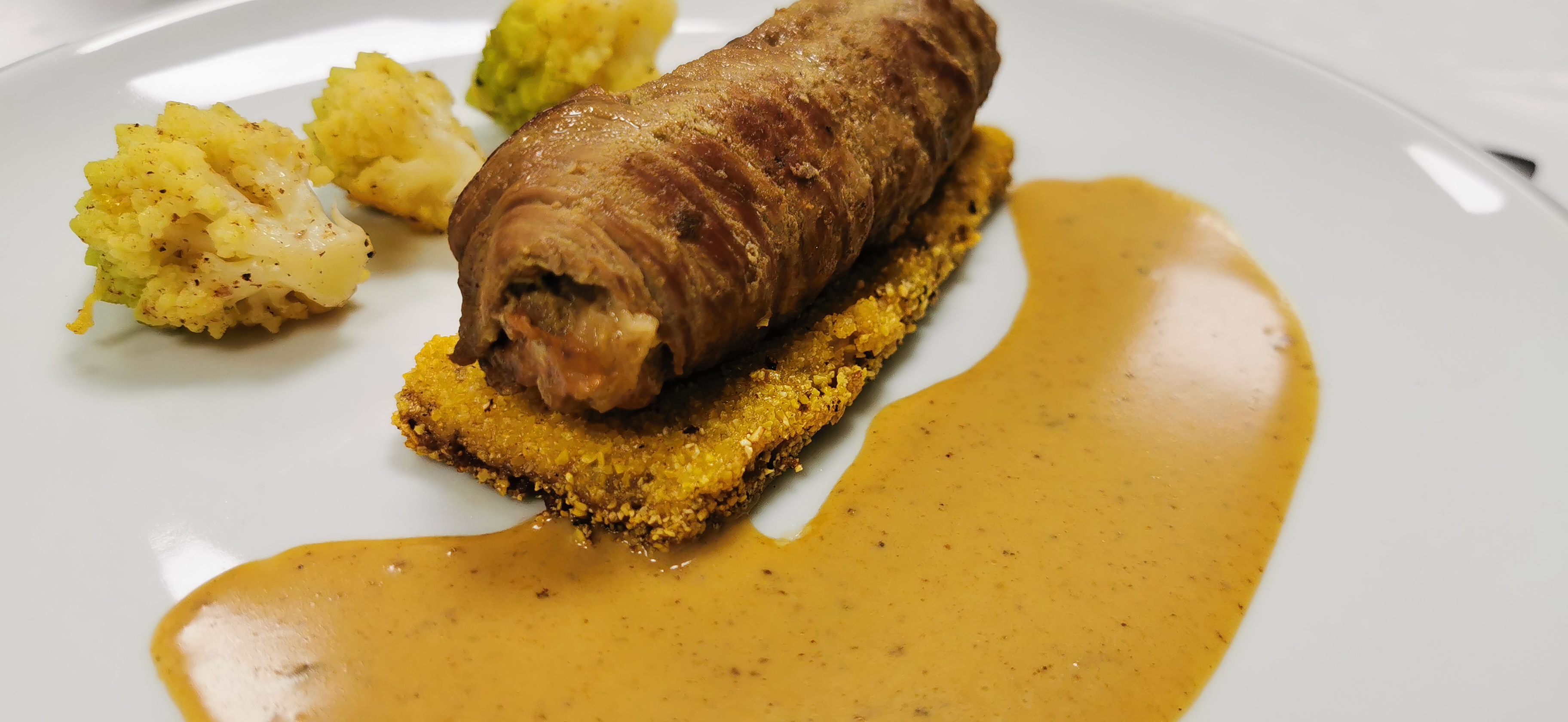 • Involtini vom Kalb, Zitronenromanesco, gebratene Polenta