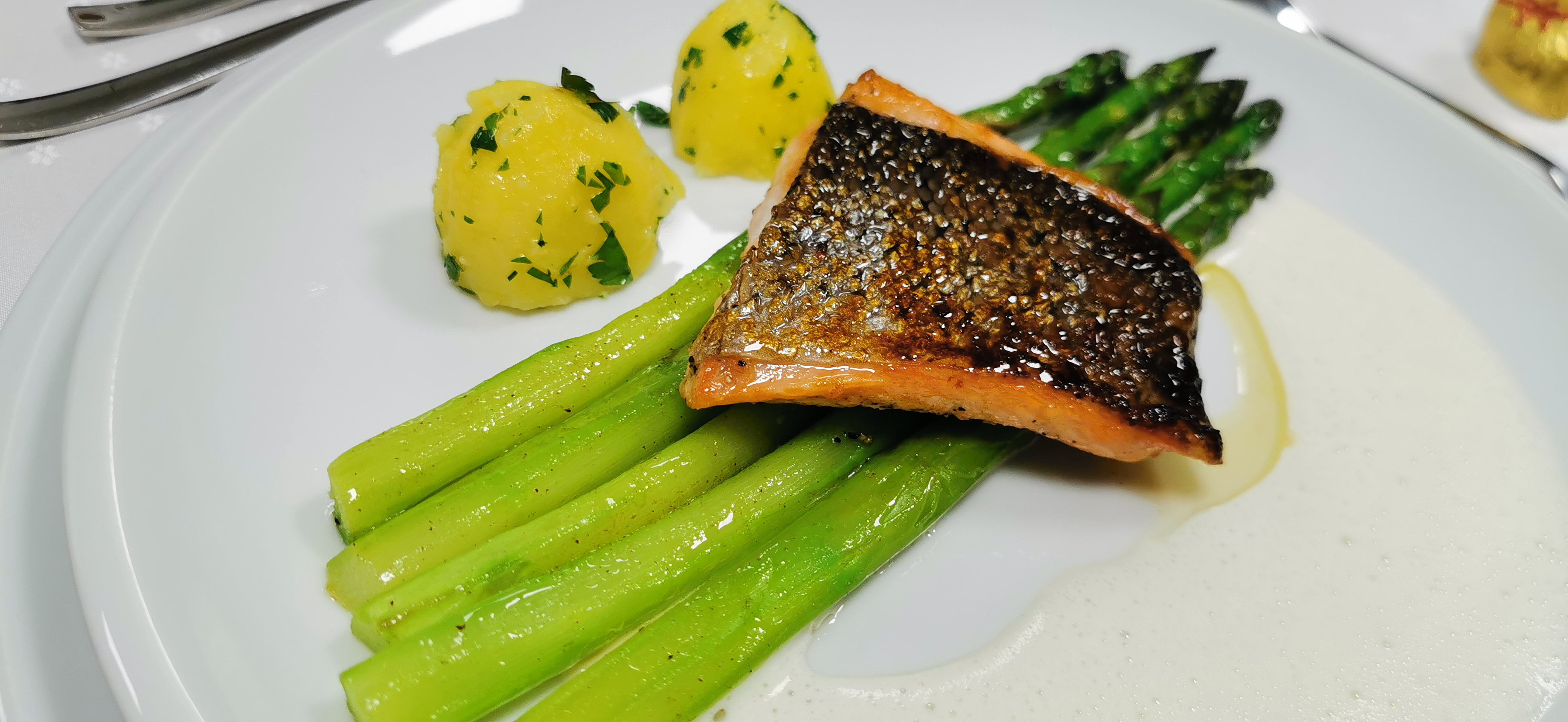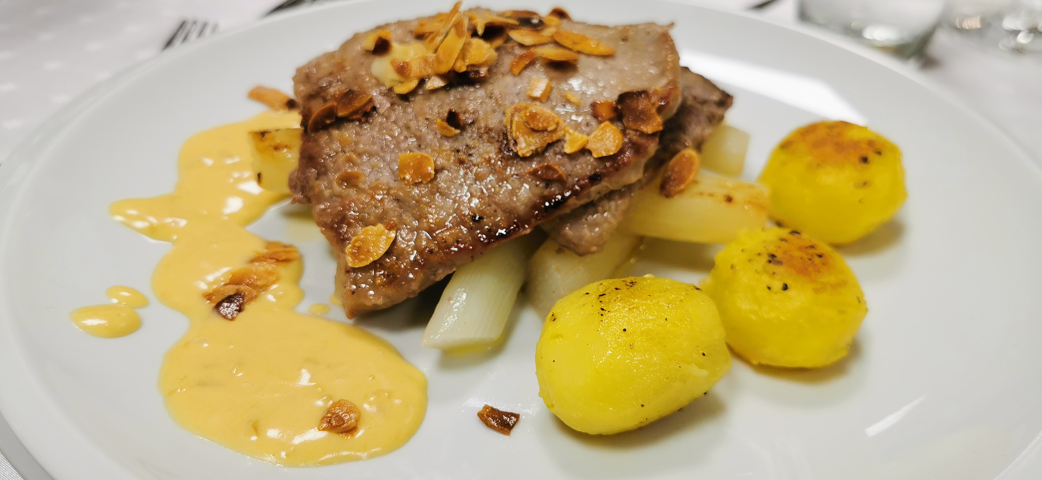 • Paillard vom Kalb, auf Zitronen Schaum mit gebratenem Spargel