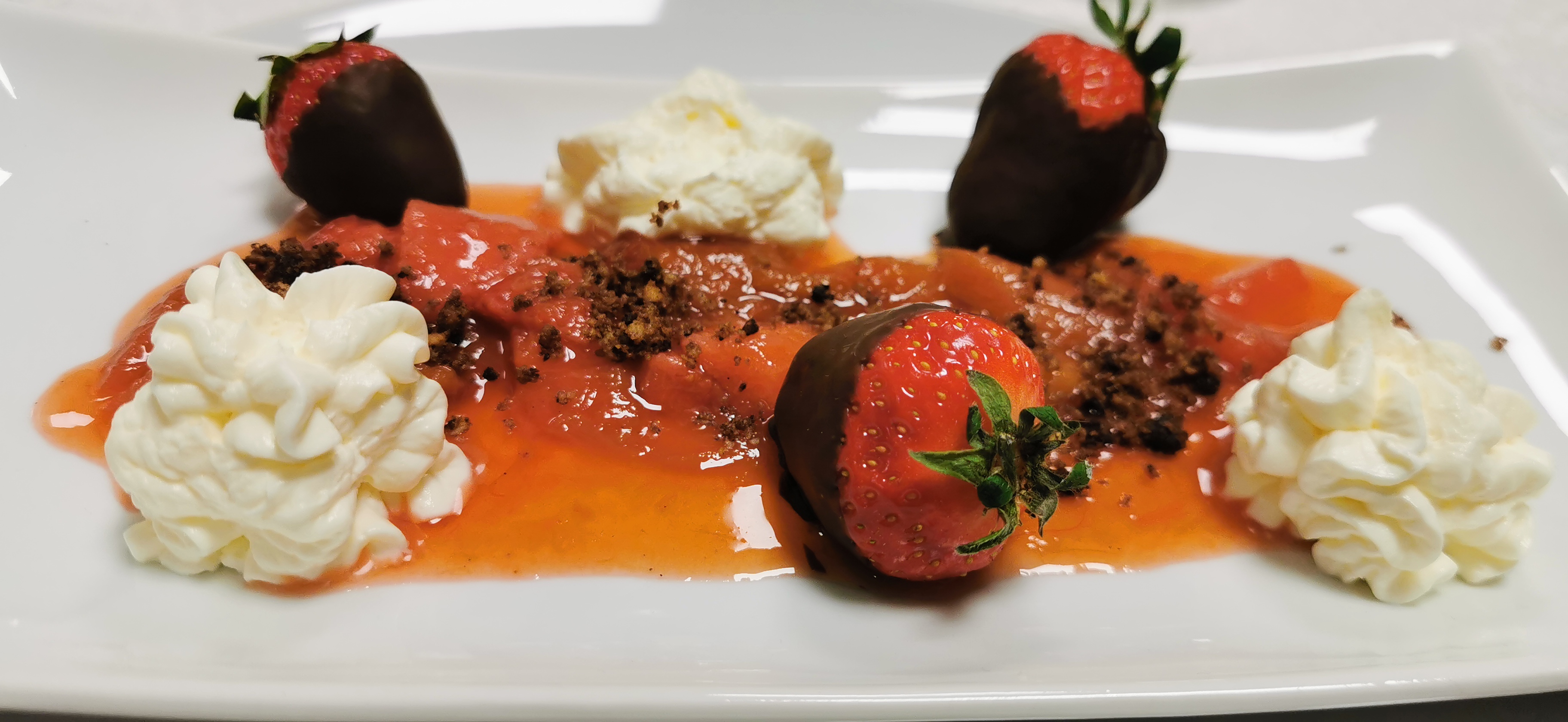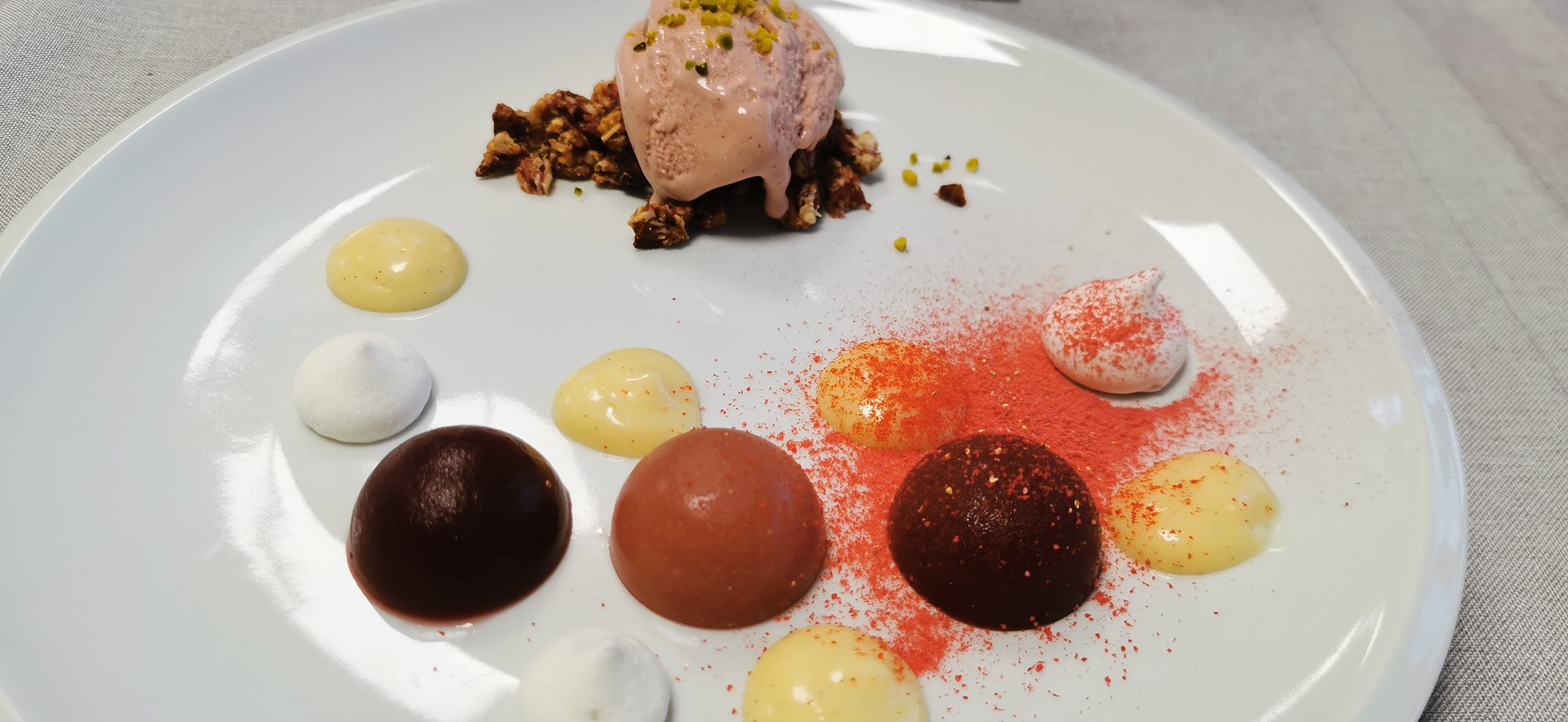 • Erdbeereis auf Fruchtcrumble mit Gelees