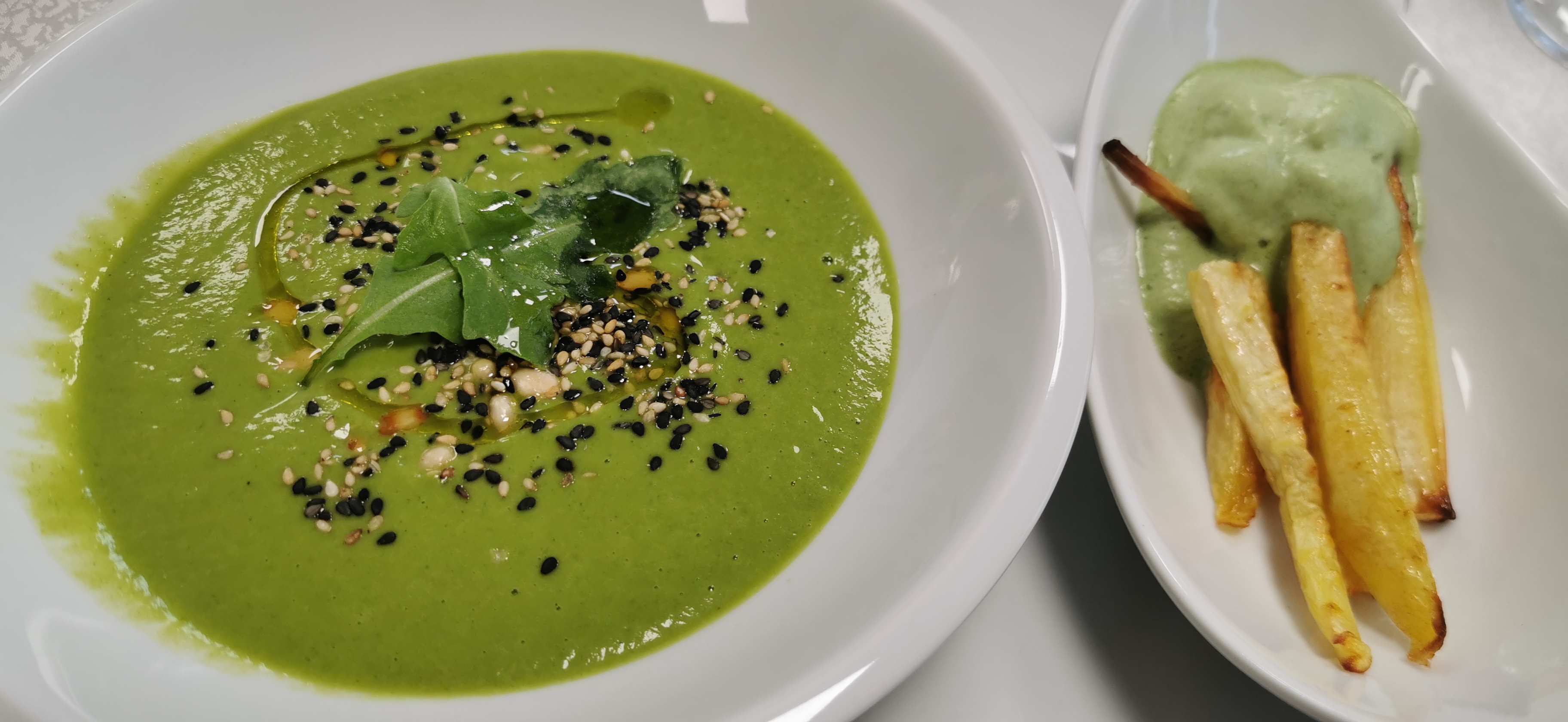 • Minziges Spinatsüppchen zu Gemüsepommes