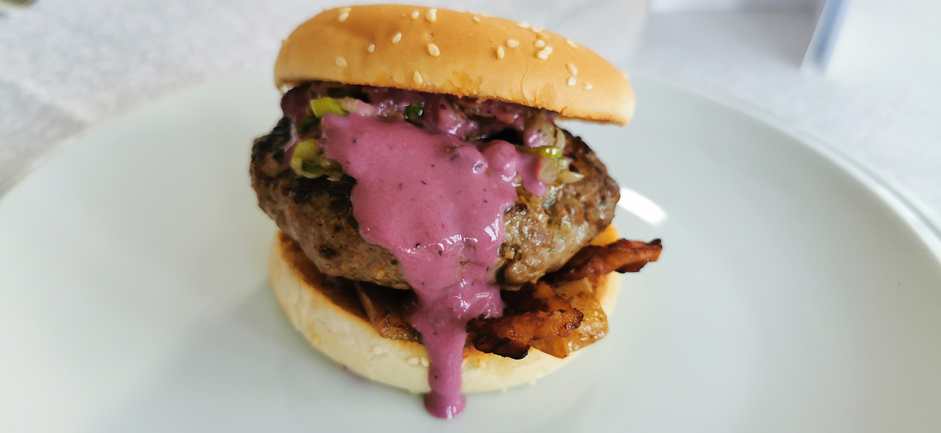 • Wildschweinburger mit Birnen und Blaubeer-Joghurt