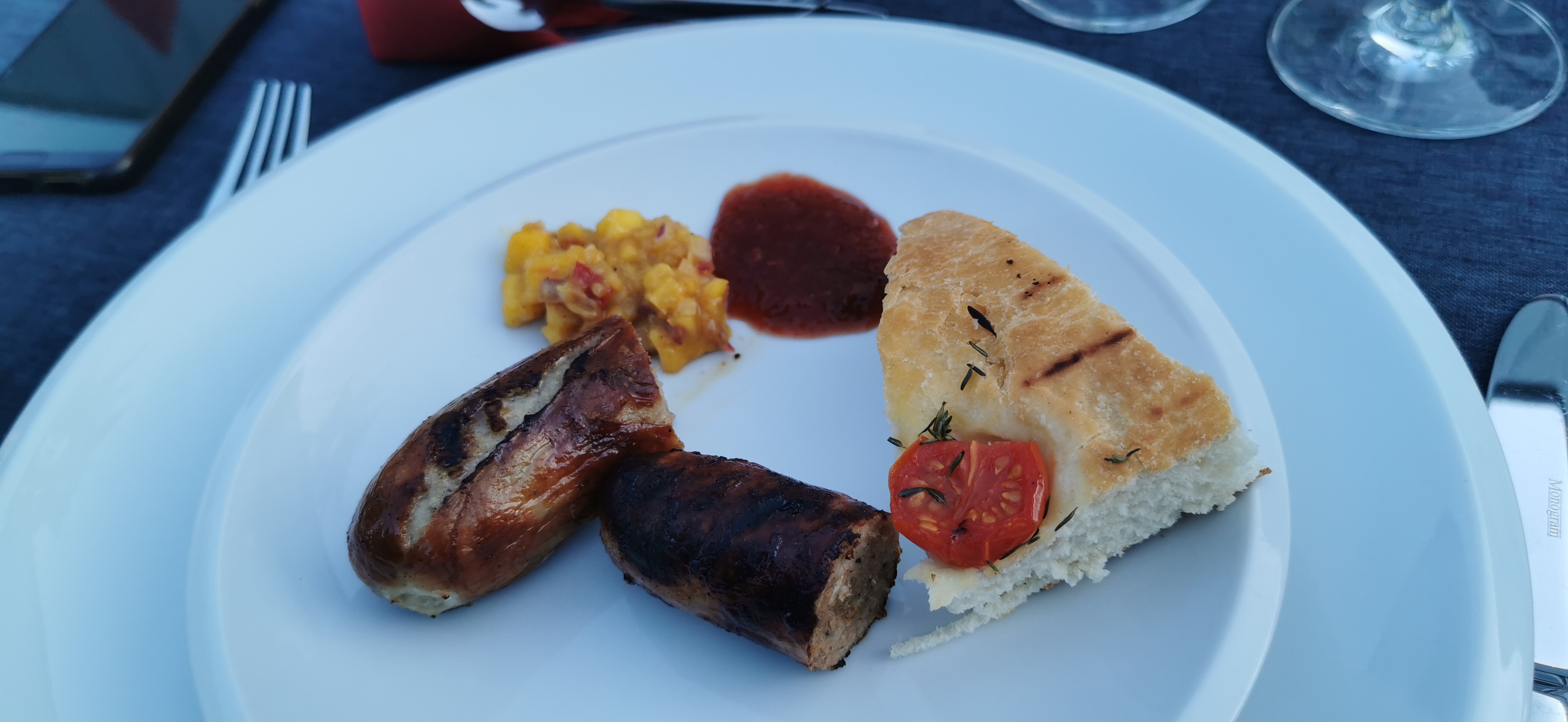 • Bratwurst mit Focaccia und Chutney