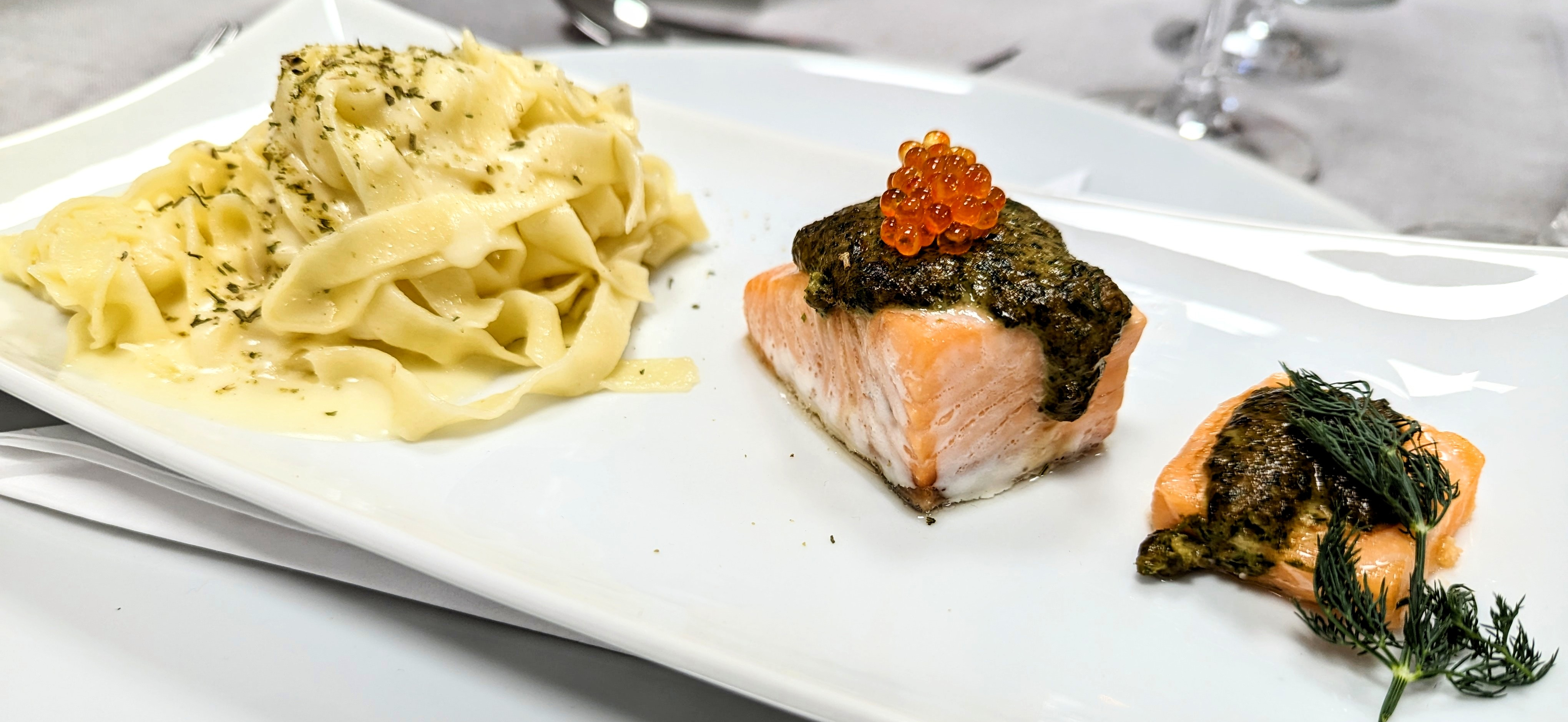 • Lachs mit Kräuterkruste und Zitronennudeln