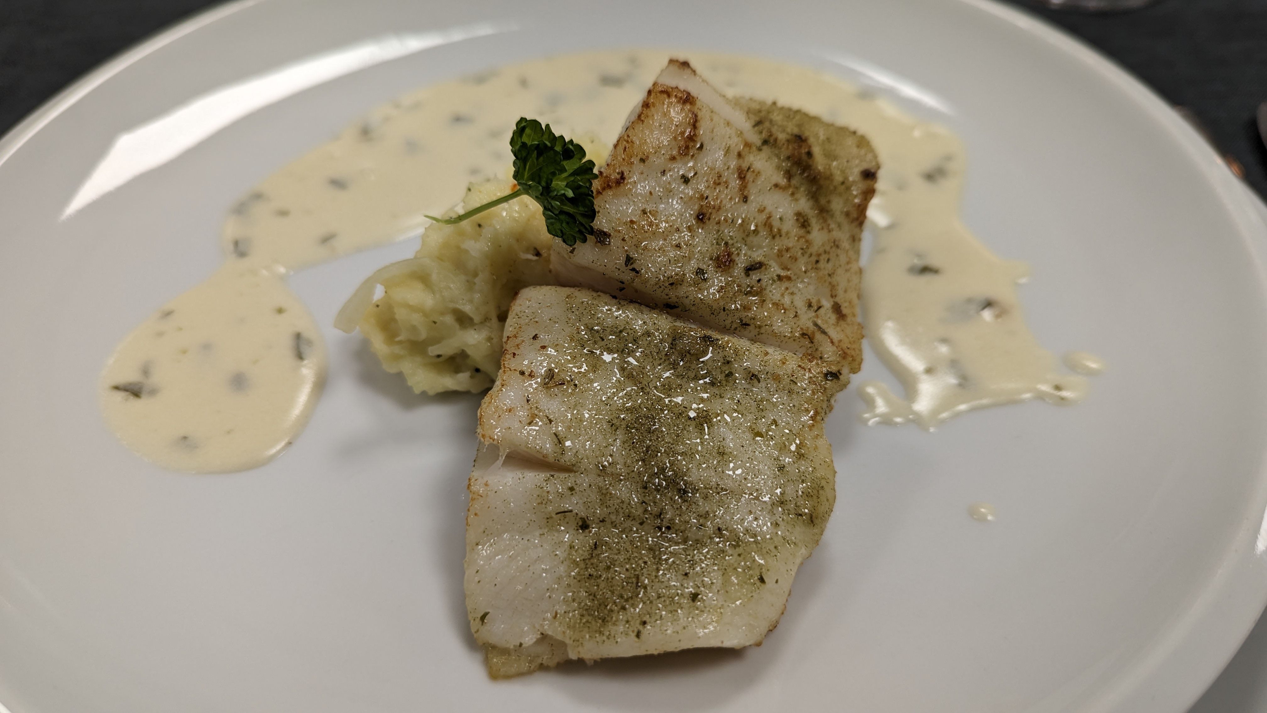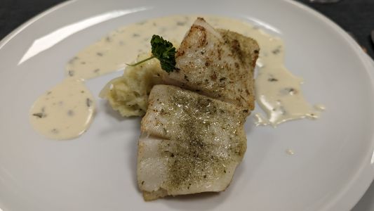 • Steinbuttfilet mit Pastinaken-Spitzkohl-Stampf und Estragonschaum