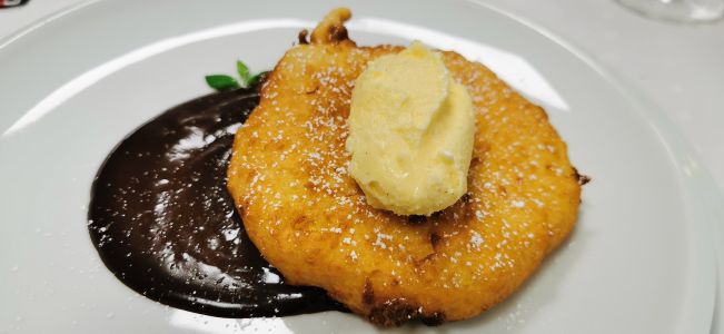 • Gebratenes Eis mit Früchten