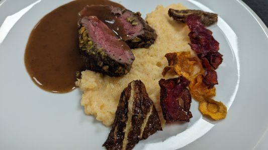 • Rinderfilet mit Pistazienkruste an Rübenpüree