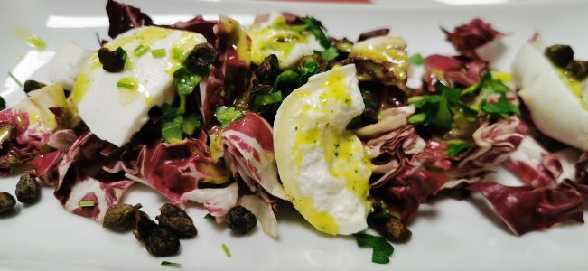 • Radicchiosalat mit Mozzarella und Knusper-Kapern