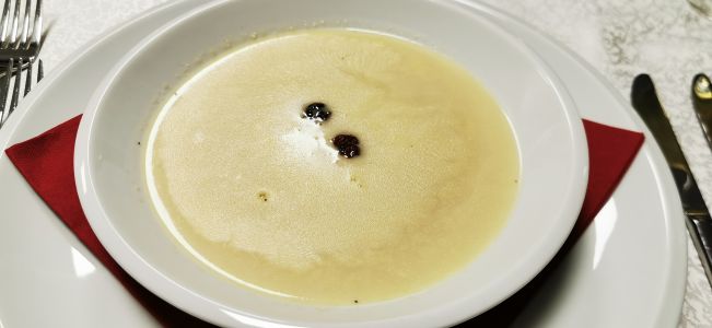 • Gruyèrsuppe mit Balsamico-Beeren
