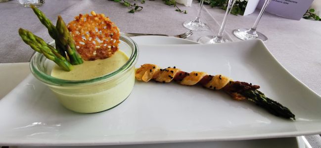 • Spargelsuppe mit gebackenem Spargel