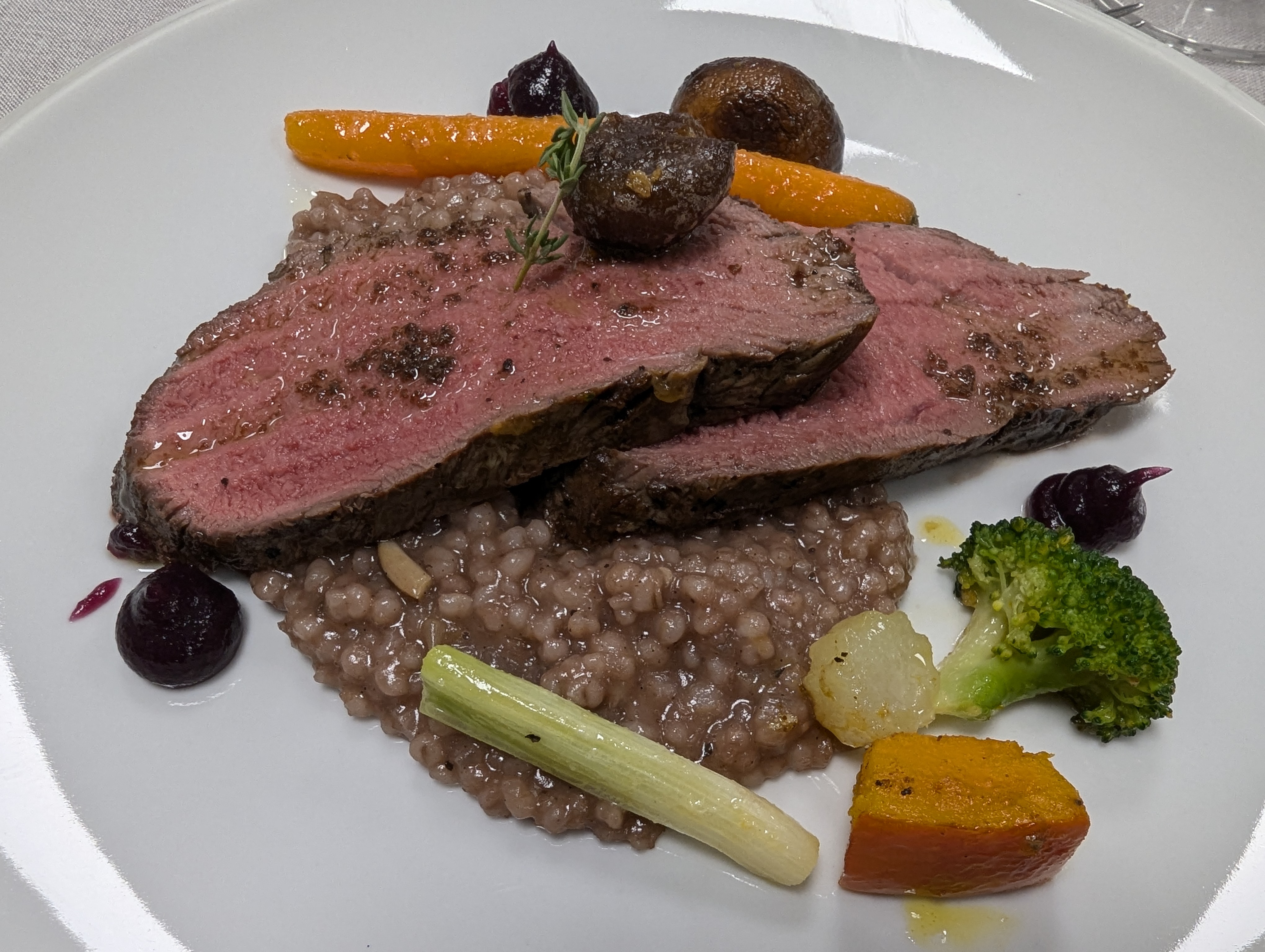 • Rosa Rinderfilet an Rotwein-Vanille Graupen