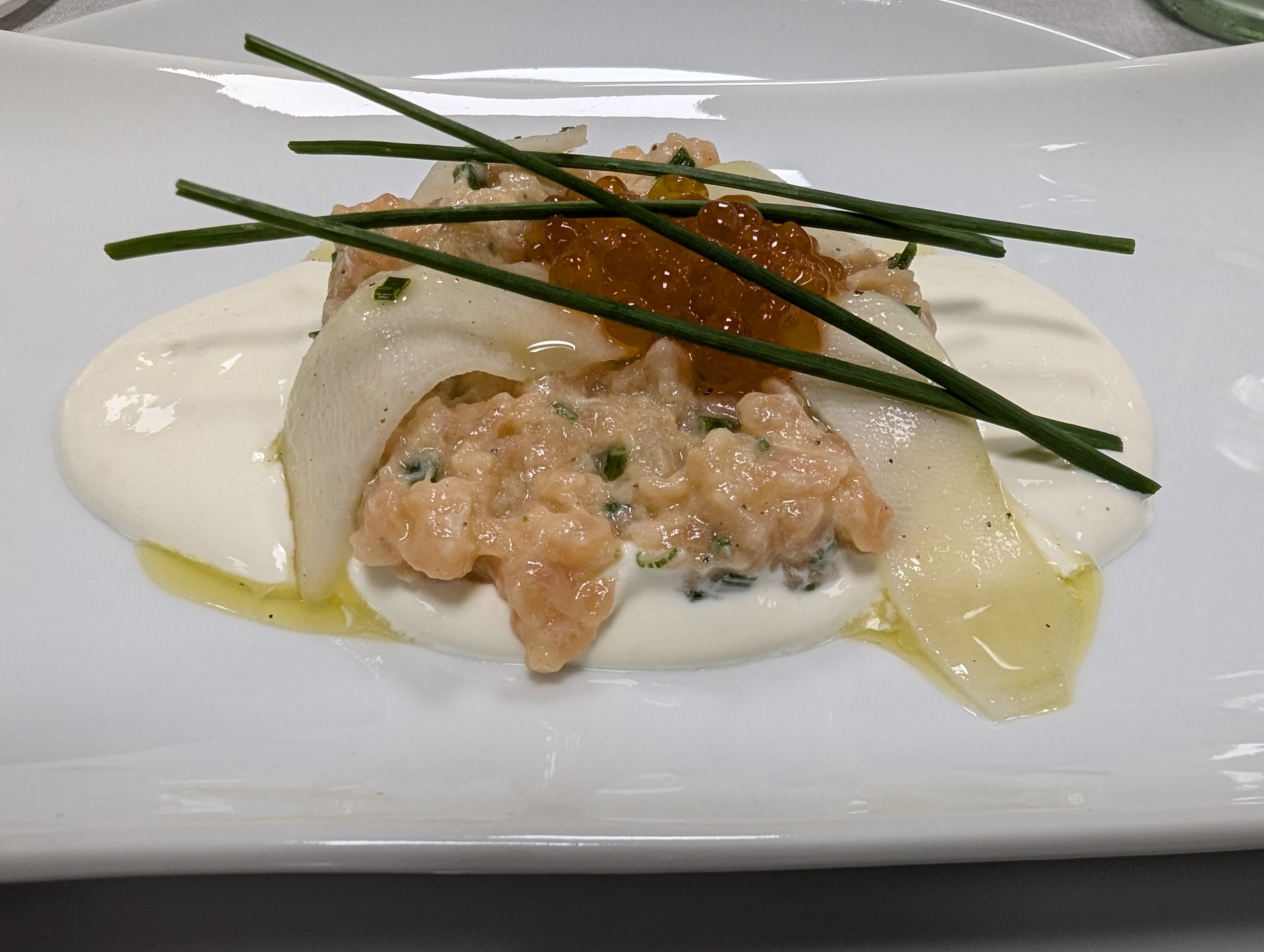 • Lachstatar mit Schmand und mariniertem Kohlrabi