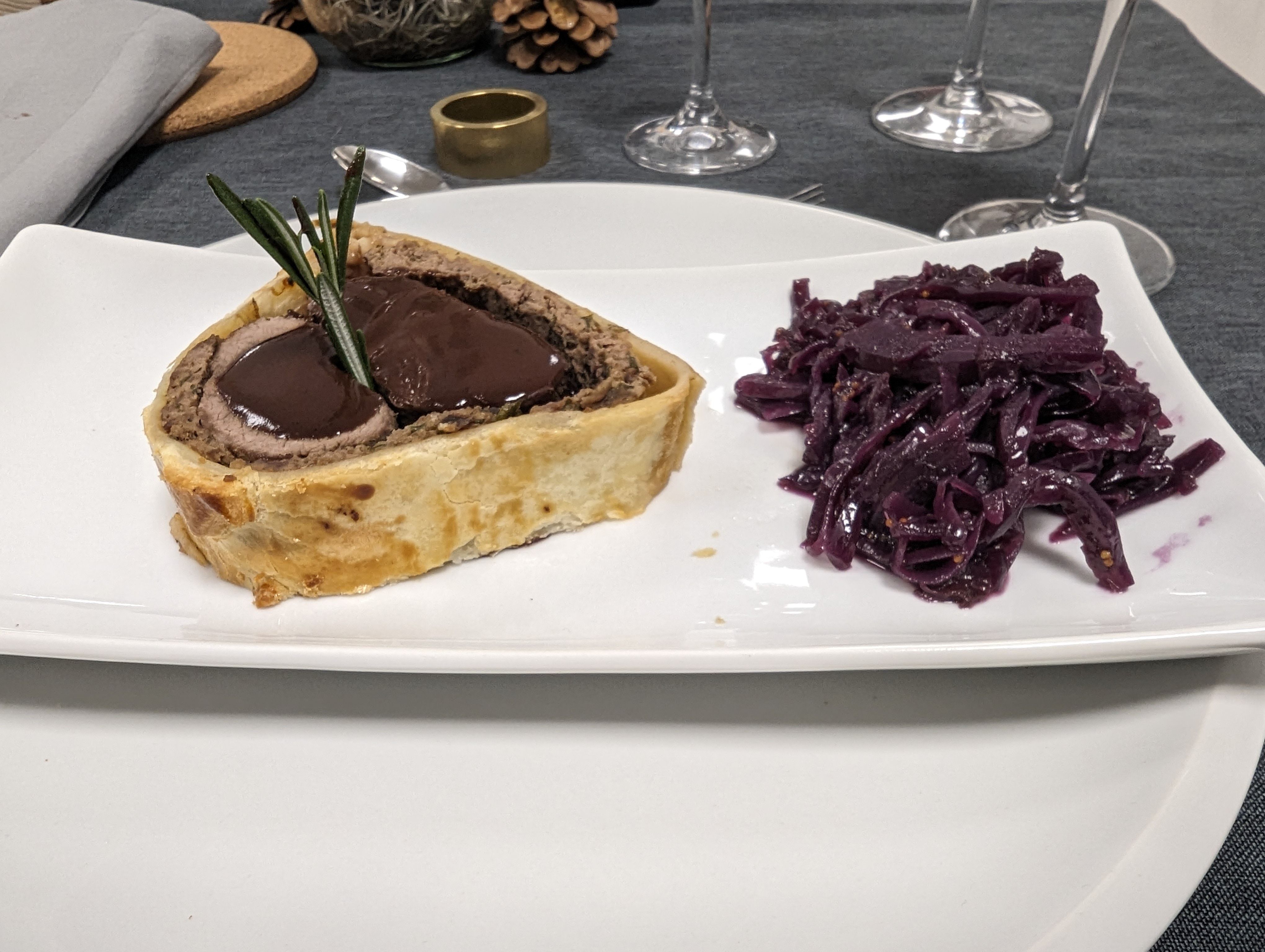 • Hirschfilet à la Wellington mit Barolosauce