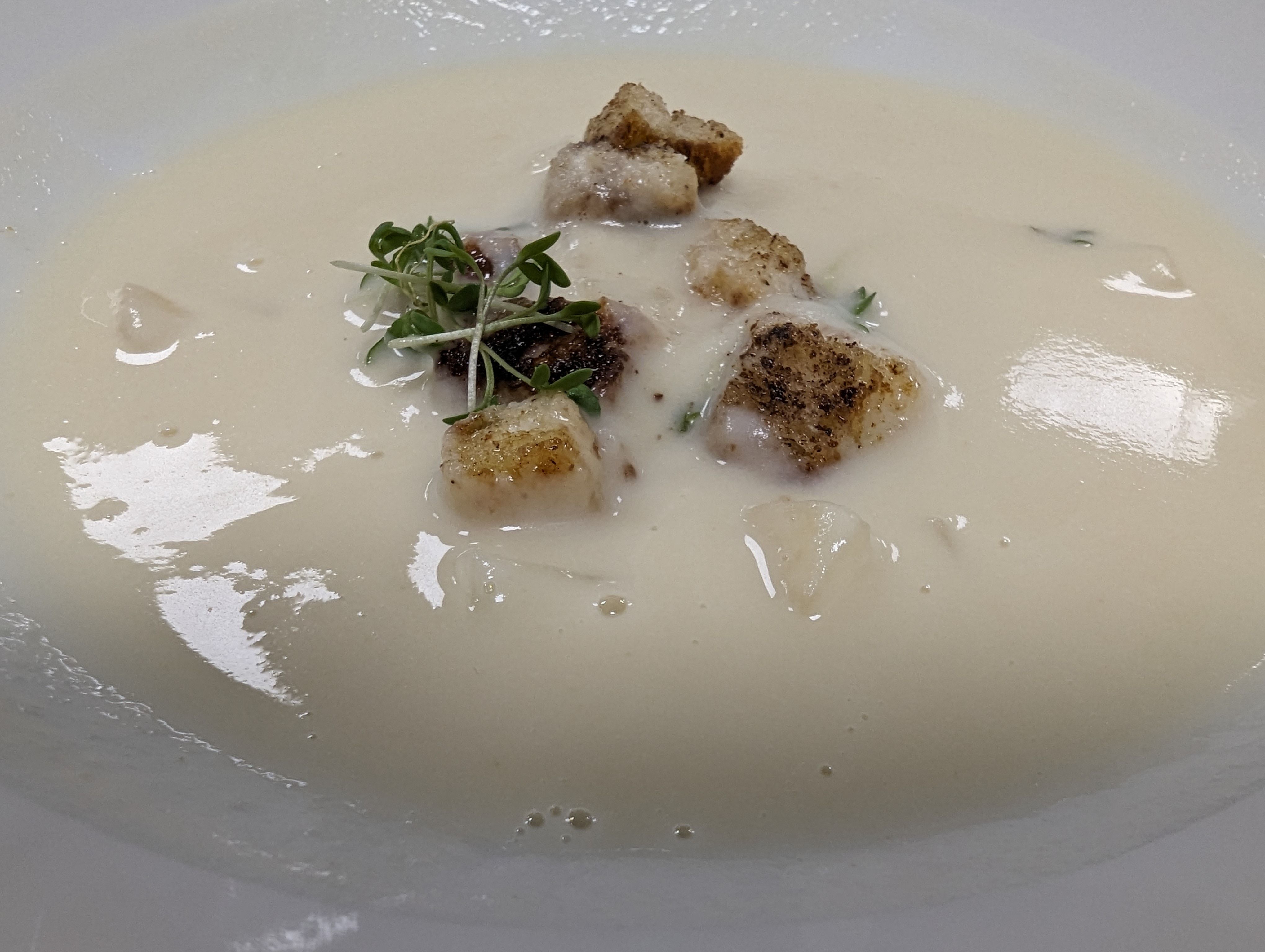 • Sellerie-Birnensüppchen mit Zimtcroûtons